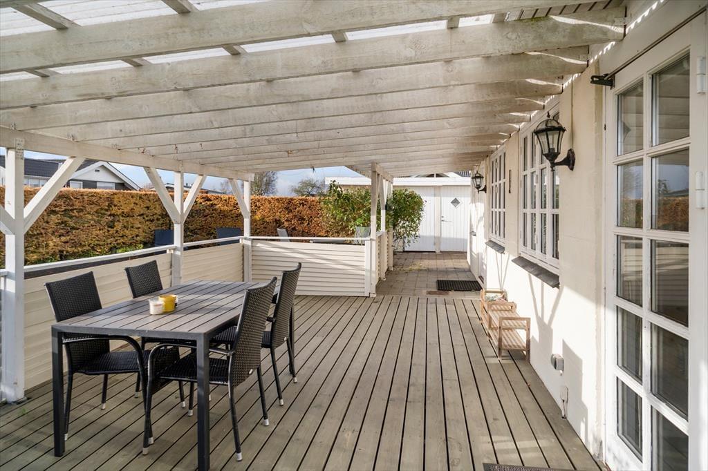 Sommerhusets terrassemiljø er skabt til at nyde lange sommerdage og lune aftener i det fri. Her kan I finde læ i en af de hyggelige kroge, tage plads ved de forskellige haveborde og sætte jer godt til rette i de komfortable havemøbler. Grillen står klar, så I kan tilberede måltider under åben himmel, og når solen går ned, kan aftenen fortsætte omkring bålfadet. Har I fanget frisk fisk, kan I glæde jer over husets fiskerenseplads, hvor dagens fangst nemt kan klargøres til grillen. Med flere terrasser er der altid et sted at finde sol eller skygge alt efter jeres præferencer, og den grønne have indbyder til leg og hygge for både store og små.