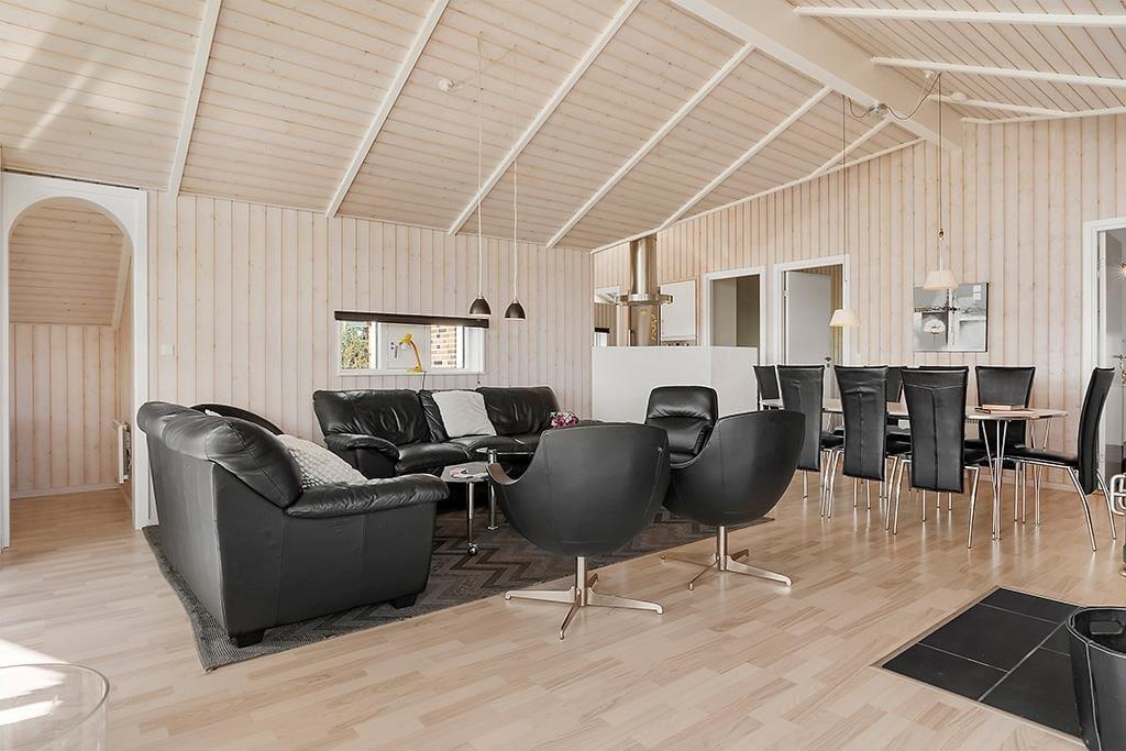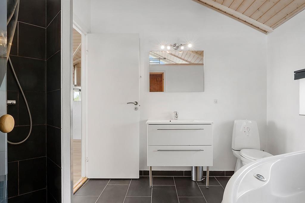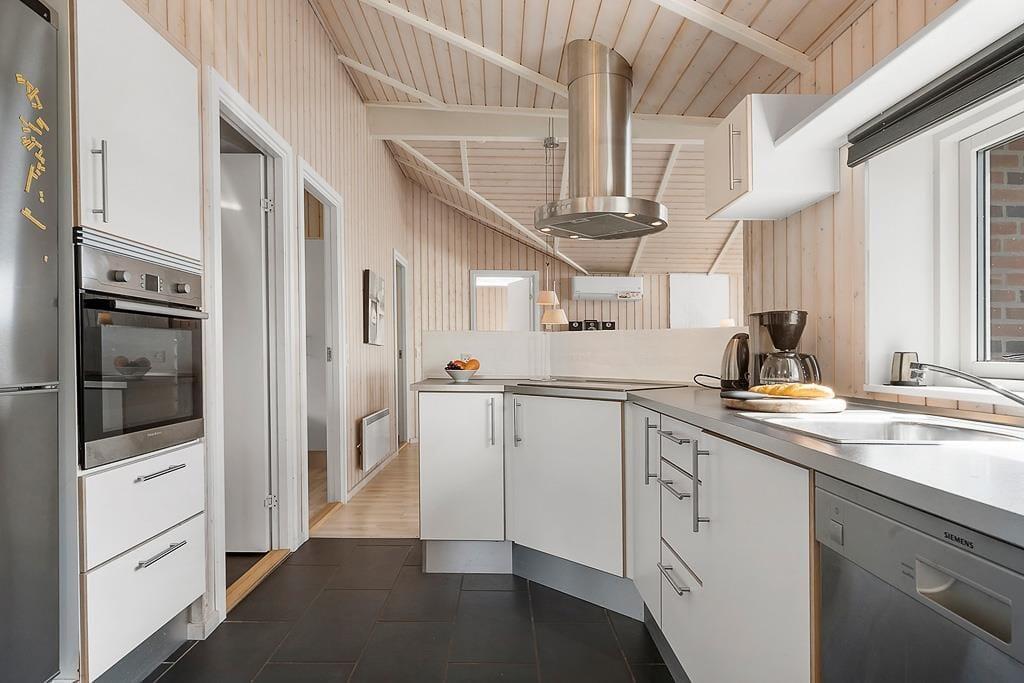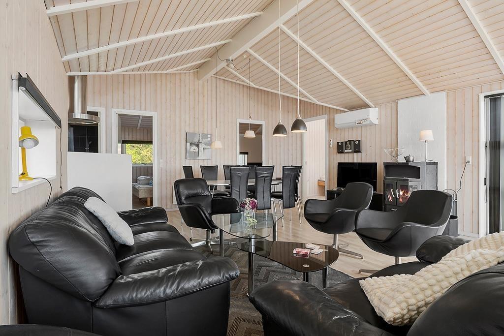 Sommerhuset på Teglgårdvej byder dig indenfor til et lyst og indbydende hjem, hvor stemningen straks føles både afslappet og hjemlig. Det centrale opholdsrum har loft til kip og store vinduespartier, der lader dagslyset strømme ind og skaber en åben og luftig atmosfære. Herfra er der frit udsyn til haven og de grønne omgivelser – og et glimt af havet i horisonten, der hele tiden minder dig om, hvor tæt du er på kysten. Det velindrettede køkken ligger i åben forbindelse med stuen og danner rammen om både madlavning og hyggeligt samvær, hvad enten det er morgenkaffe i ro og mag eller middagssnakke med familien. Sommerhuset har to badeværelser, hvor det ene forkæler dig med både sauna og spabad – perfekt til de kølige aftener, hvor du har brug for at slappe helt af og lade op.