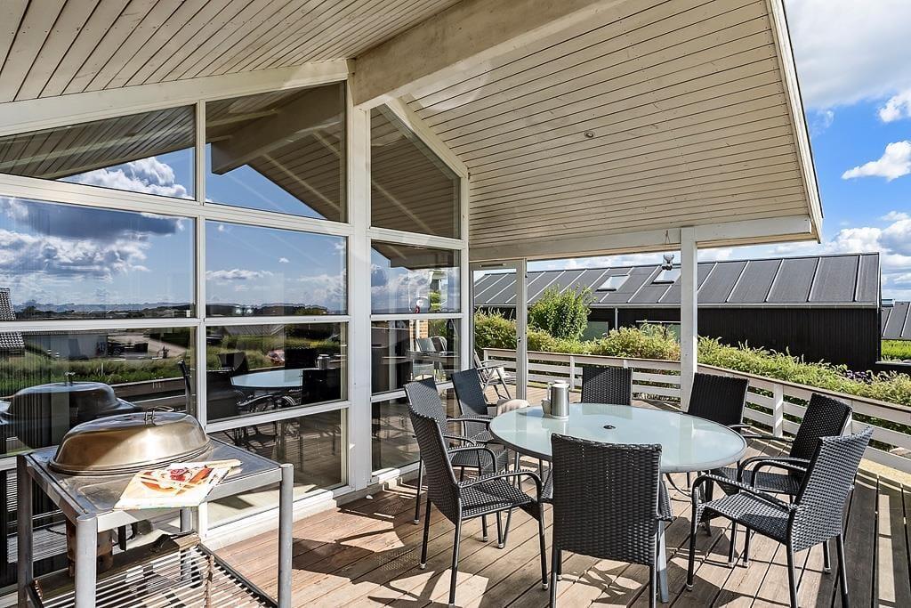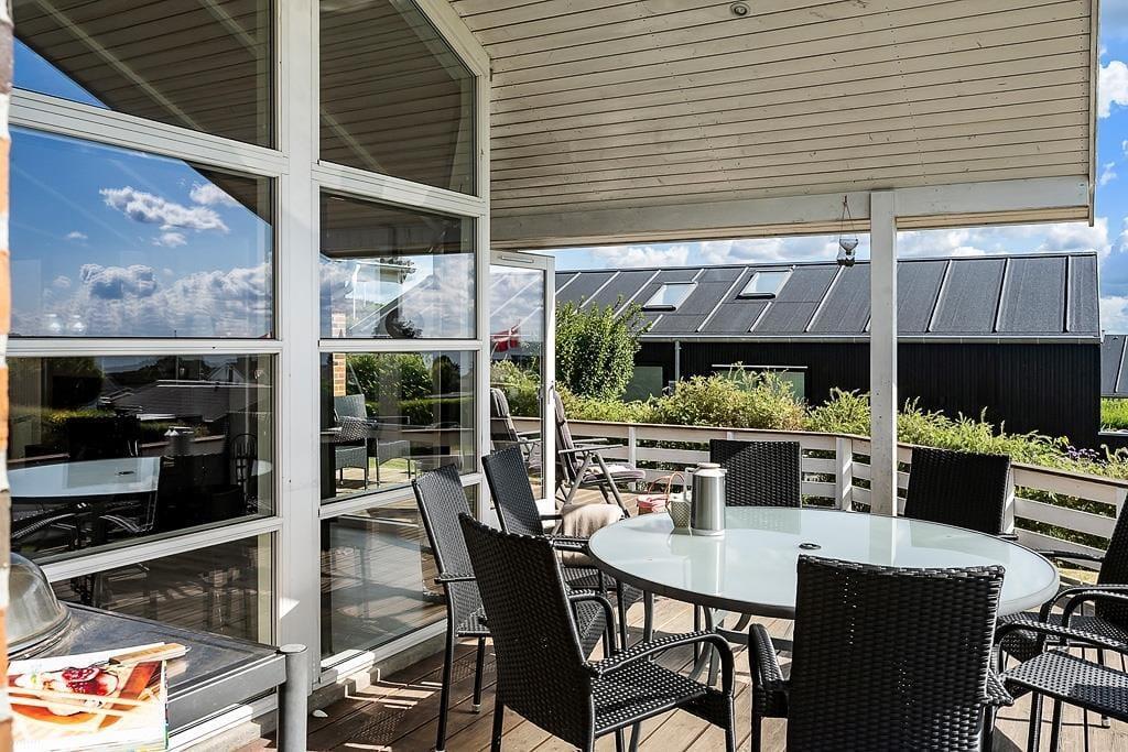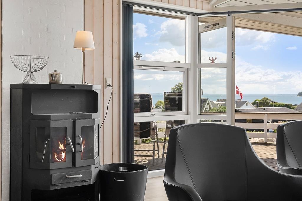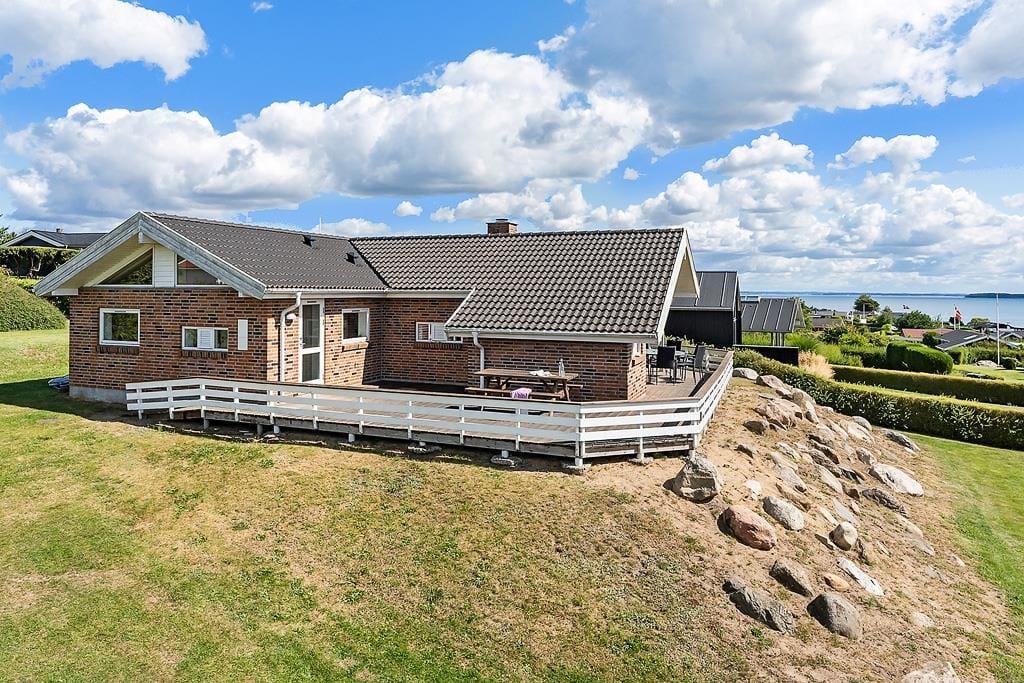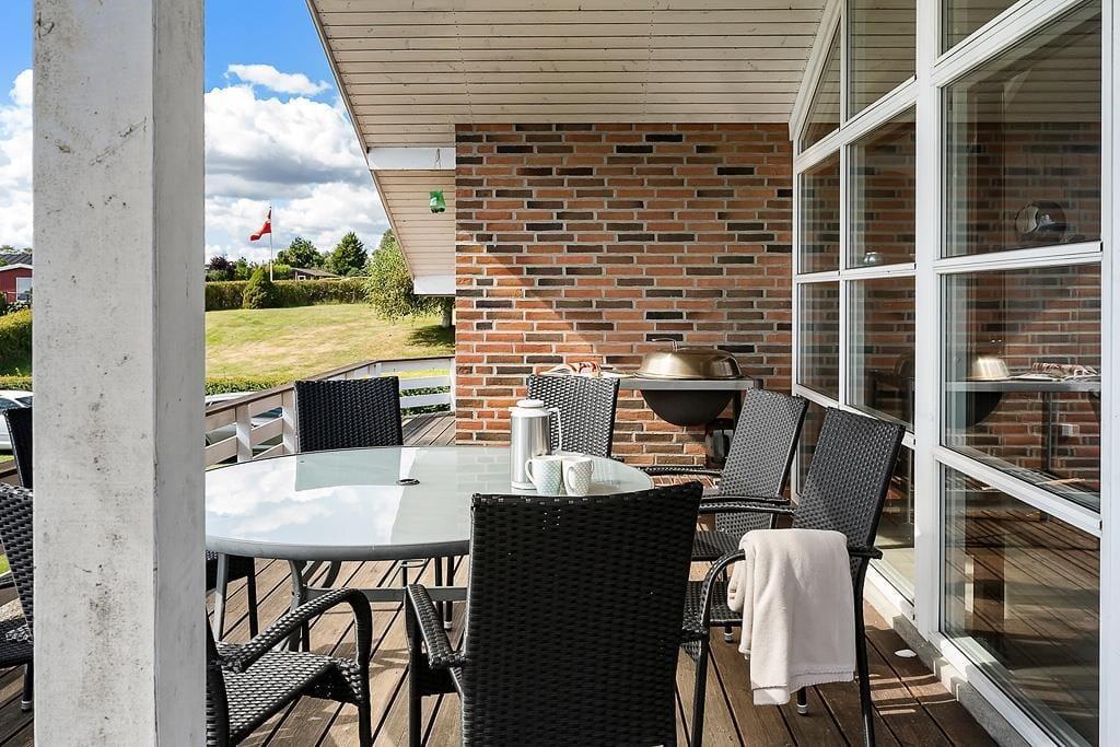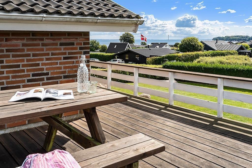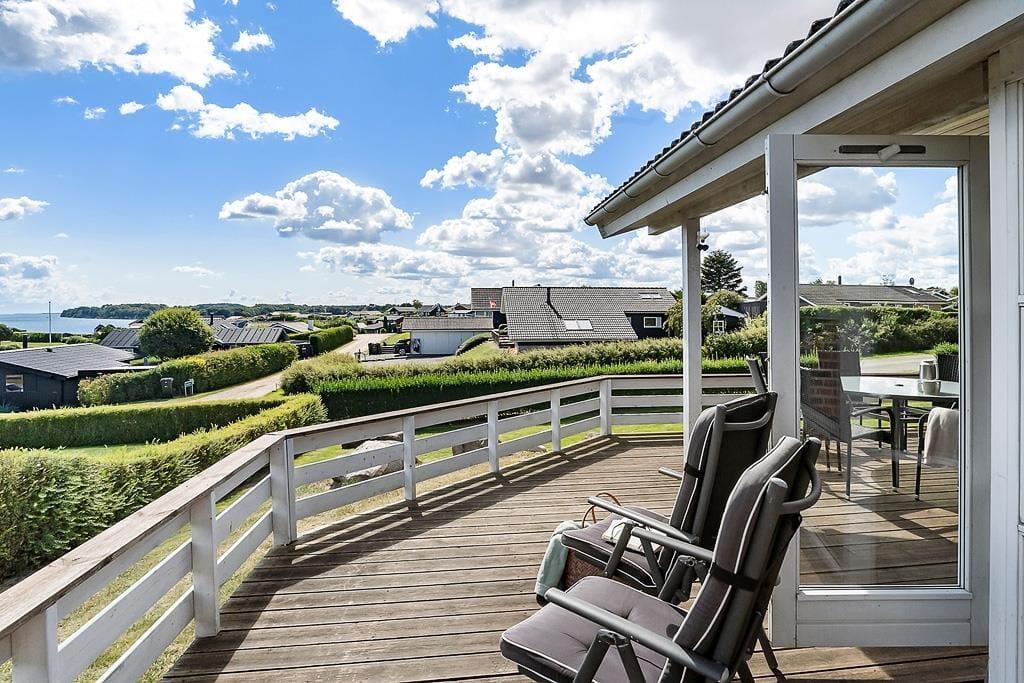 Fra stuen træder du direkte ud på den store terrasse, som ligger højt i terrænet og giver dig en skøn fornemmelse af luft og udsyn. Her kan du finde en solrig krog det meste af dagen – ideelt til at nyde morgenkaffen, læse en god bog eller dele en middag under åben himmel. Terrassen er udstyret med komfortable havemøbler og grill, så I kan skabe ægte feriestemning fra første dag. Den omkringliggende grund er dejlig stor, og der er god plads til at børnene kan lege, mens de voksne nyder udsigten i ro og mag. Fuglesang og vindens susen i trætoppene bliver nemt din daglige baggrundsmusik – og herfra kan du også nyde det særlige lys, som havet kaster over landskabet omkring Hejlsminde.