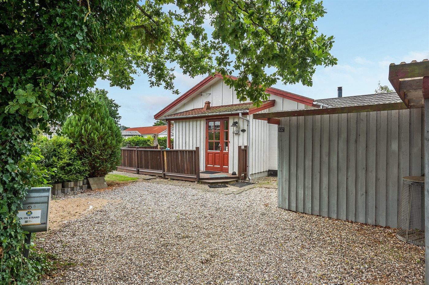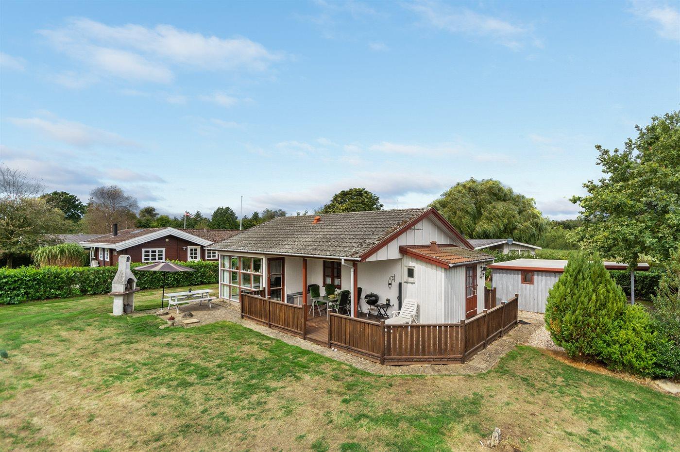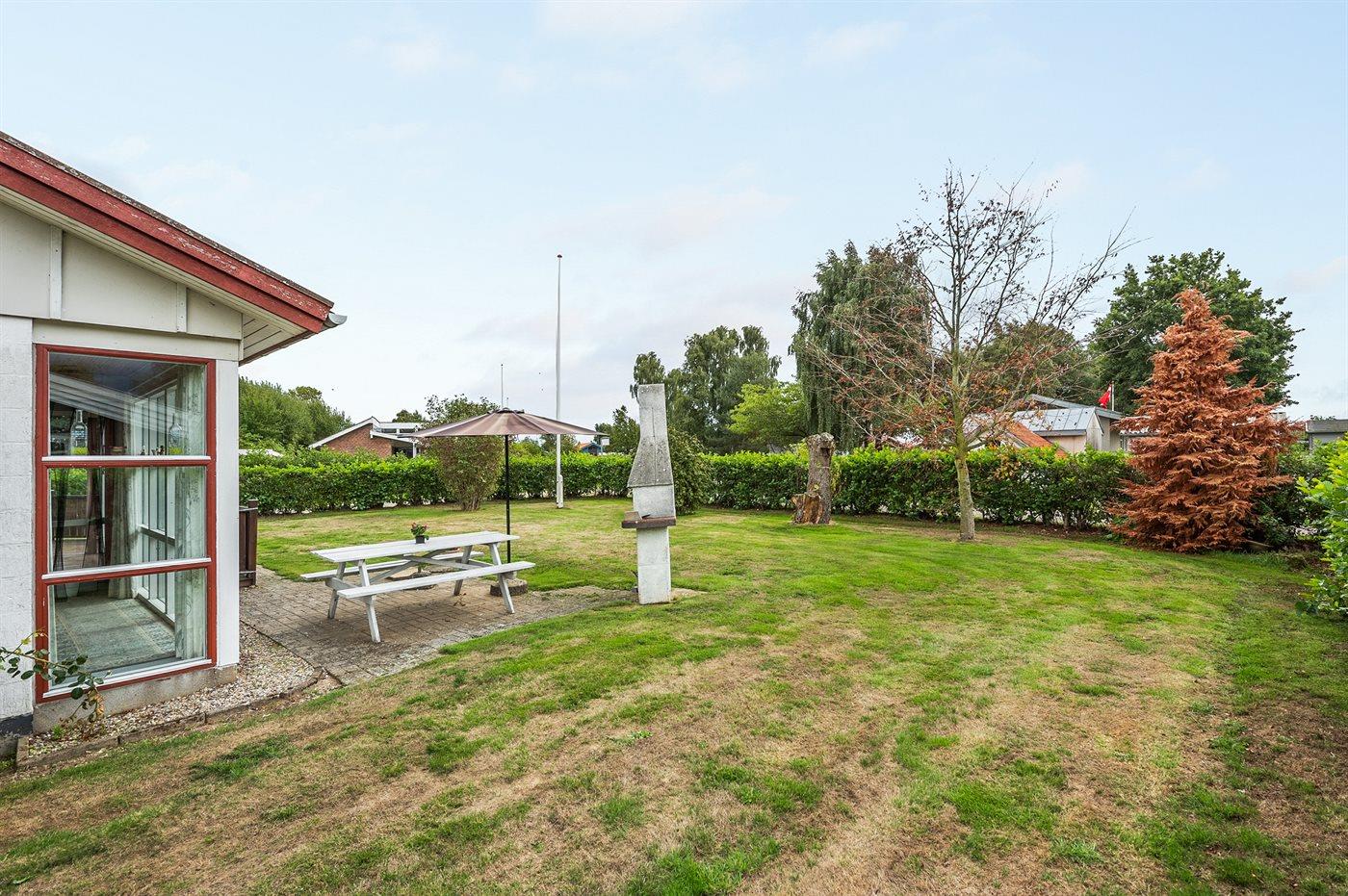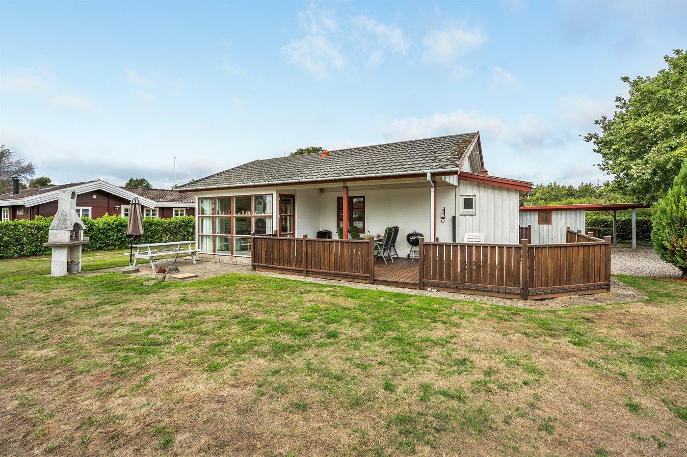 Ferieboligen er beliggende på en 813 m² stor havegrund. Der er 250 m til havet. Nærmeste forretning er beliggende i en afstand af 8000 m. Til ferieboligen hører 10 m² terrasseareal. Desuden er der 10 m² overdækket terrasse. Gynge. Der er carport til rådighed. Parkering ved ferieboligen.