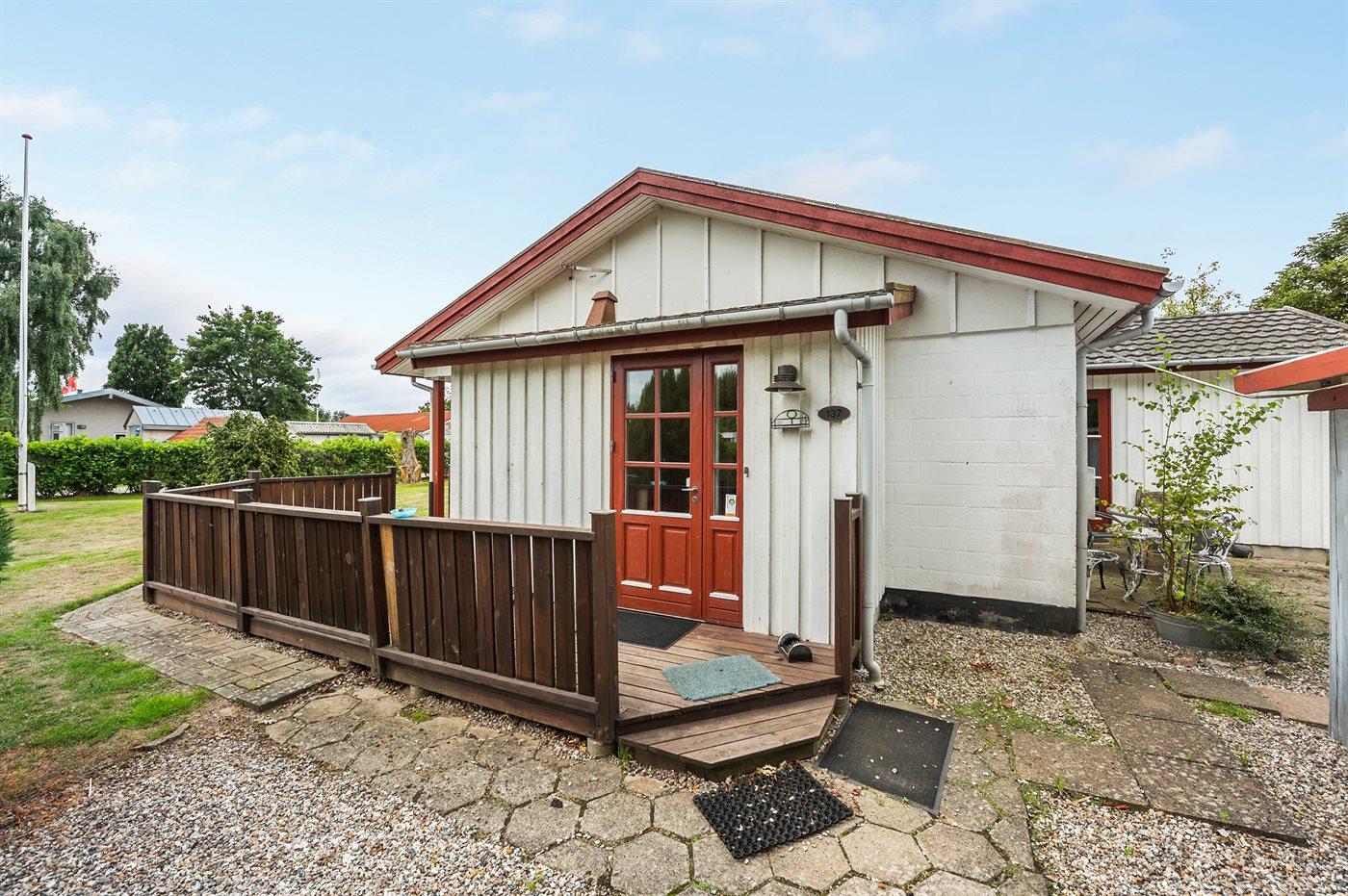 Velholdt ældre sommerhus beliggende i udkanten af et mindre sommerhusområde tæt på vandet i et roligt og naturskønt område.