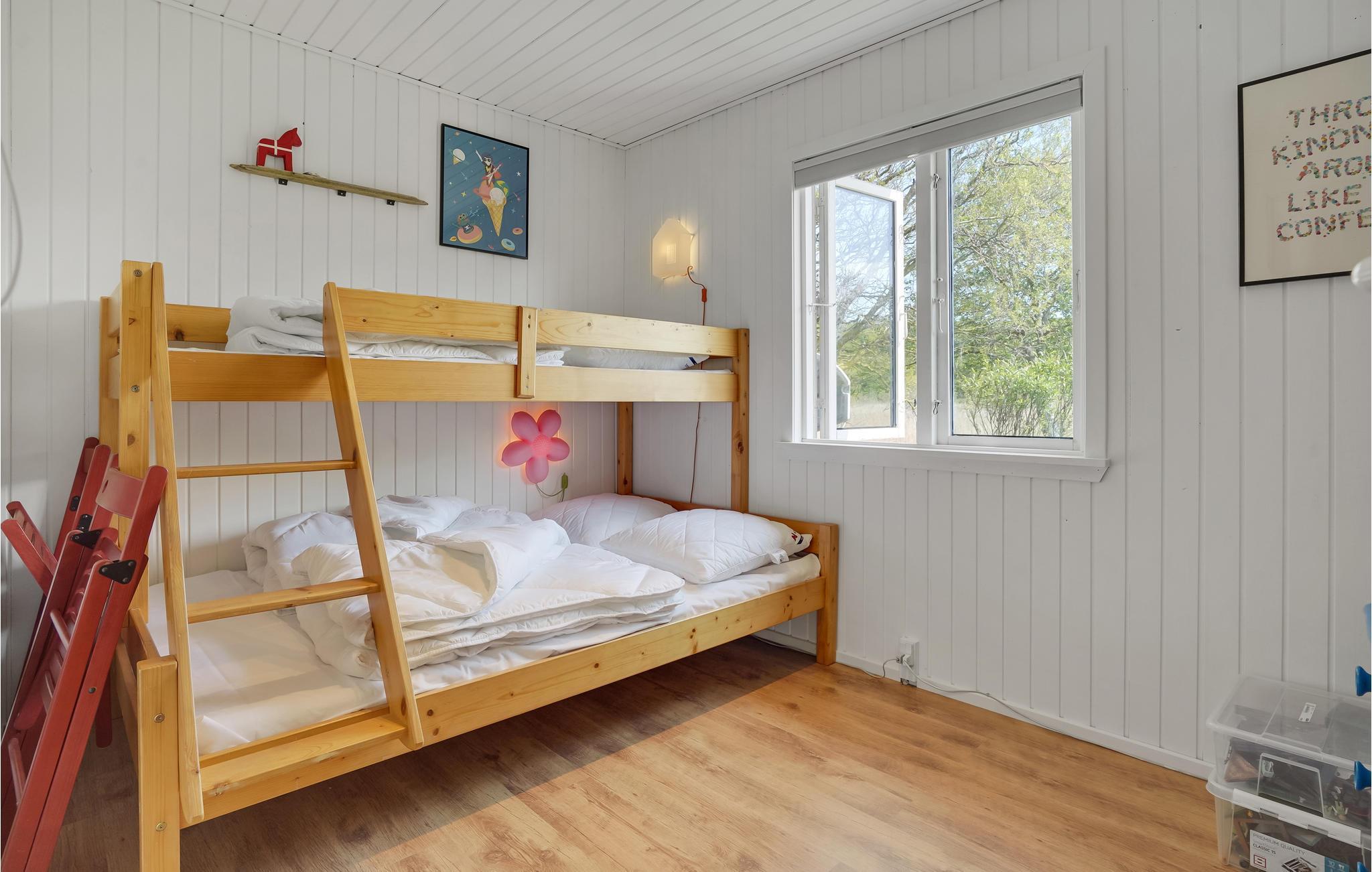 Soveværelse (nr. 1) - 2 Sovepladser. (Dobbeltseng(e)). 1 Soveplads. (Etageseng(e)).