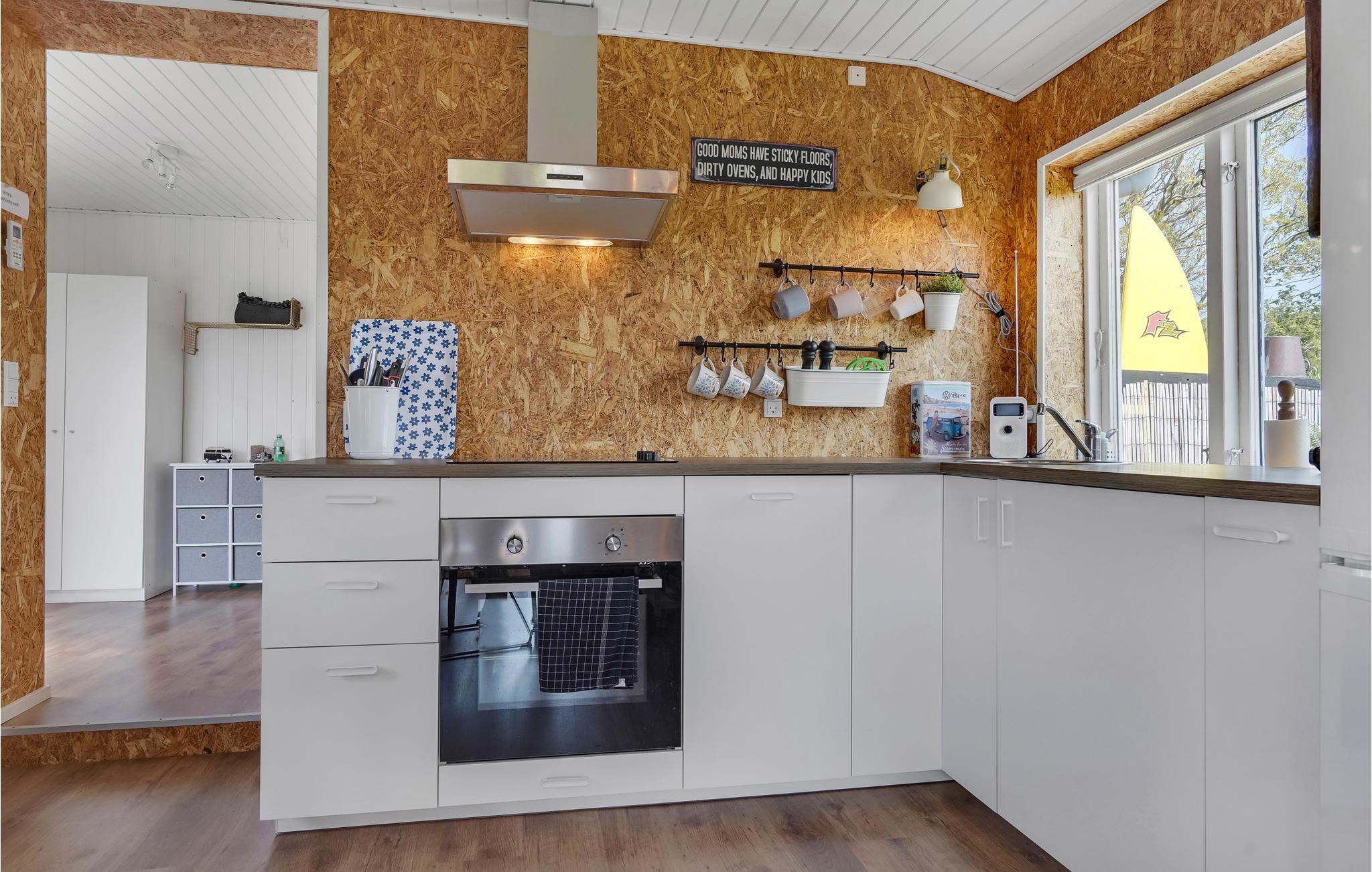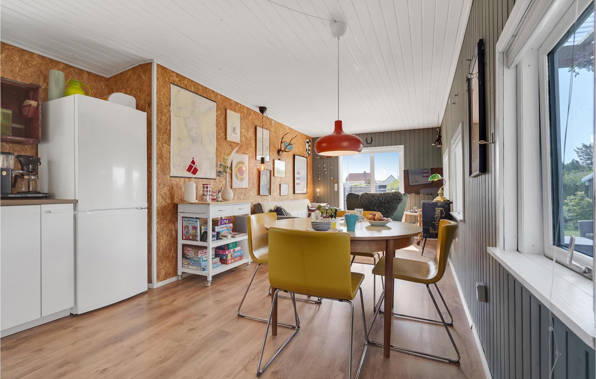 I husets lyse rum kan I slappe af med hele familien. Med mange små charmerende farvedetaljer og vægdekor er huset indrettet med henblik på ren hygge og velvære. De forskelligartede vægge giver rummene en særlig stemning. Lad børnene være med i køkkenet og sæt aftenens spilleudfordring i gang ved det runde spisebord. Børnene kan spille kort på sofaen efter en dejlig dag på stranden. Nyd solen på terrassen, mens børnene spiller rollespil på græsplænen. Hvem mon finder hængekøjen først? Efter et sjovt spil badminton kan I tænde lyskæden på den overdækkede terrasse om aftenen, spise koldskål med kammerjunkere og bagefter glæde børnene med et lejrbål. Den vidunderligt lange og brede sandstrand ligger kun et par skridt væk. Her kan I plaske rundt med børnene, lege i sandet og lede efter de smukkeste sten sammen på en gåtur.