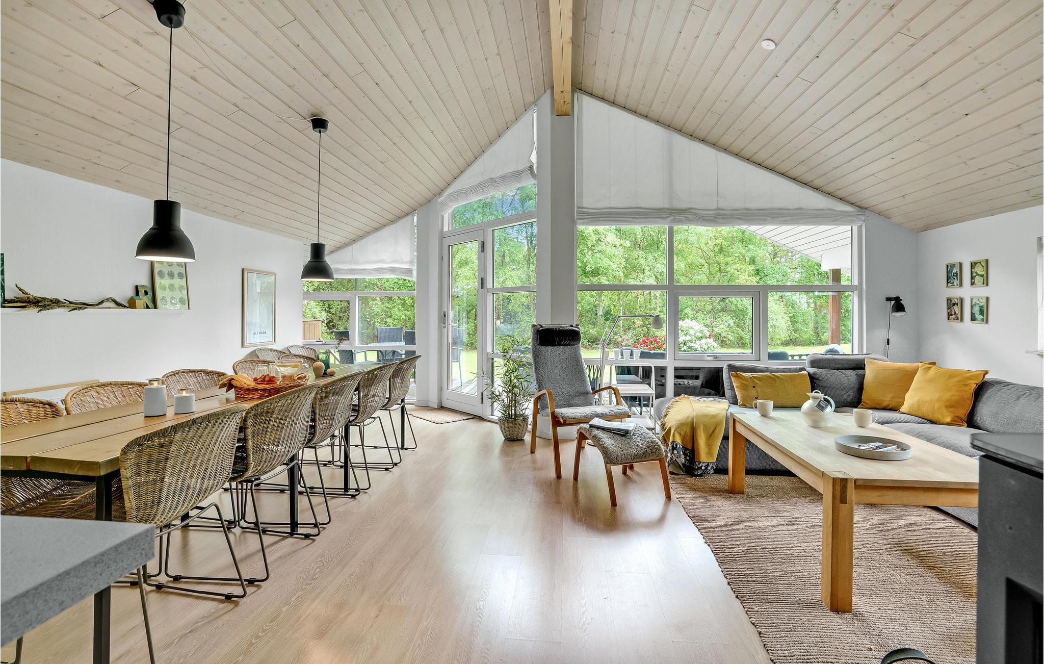Gå helt ned i gear under et ophold i dette rummelige og lyse sommerhus, hvis hjerte er den kombinerede spise- og opholdsstue med åbent køkken, således at feriekokken/kokkene kan holdes med selskab under madlavningen. Her kan I hygge jer med kortspil, fjernsyn og ferielæsning. Brændeovn og helårsisolation gør også huset særdeles velegnet til ferieophold uden for sommersæsonen. Et rigtigt højdepunkt ved huset er spaet og saunauen, som indbyder til skøn feriewellness.