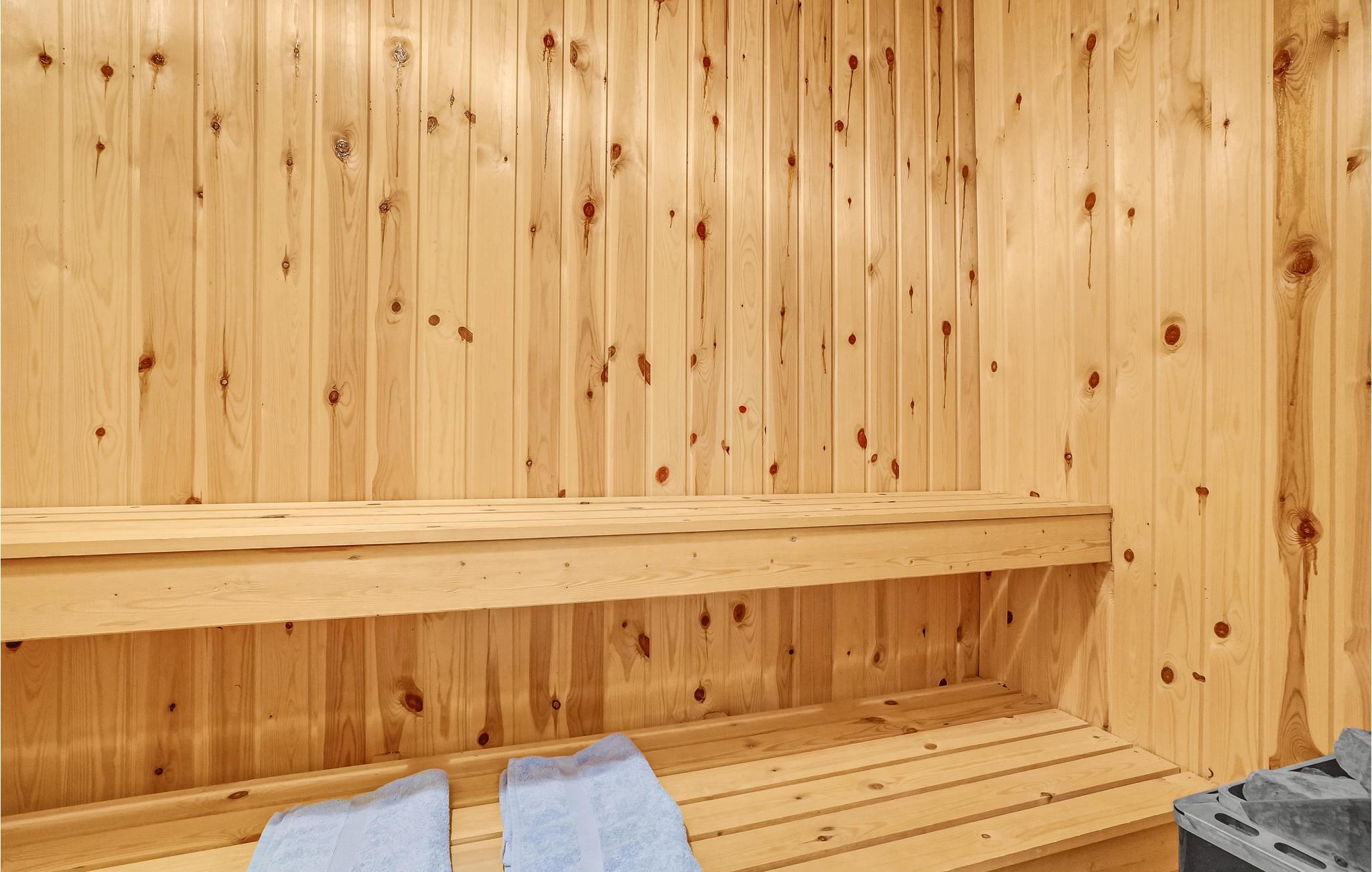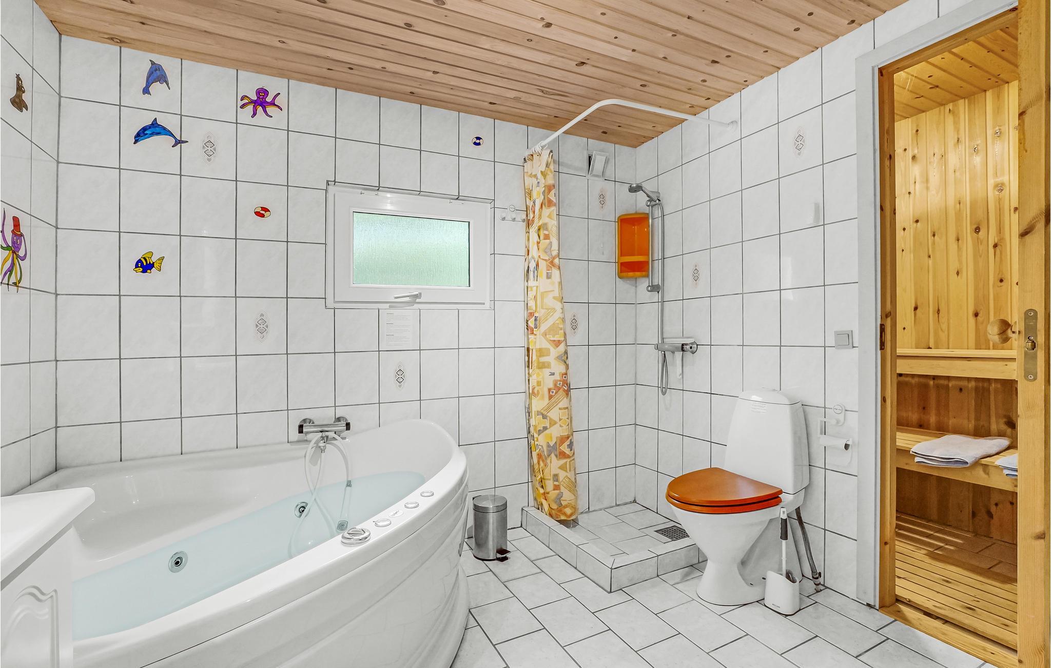 Huset er pænt møbleret med komfortable møbler og fremtræder lyst og meget indbydende. Mod den overdækkede terrasse er der store vinduespartier fra loft til gulv, lige som ovenlysvinduer sørger for fint lysindfald til stue og køkkenafdeling. To badeværelser, det ene med spabad og sauna. Der er gratis internet.