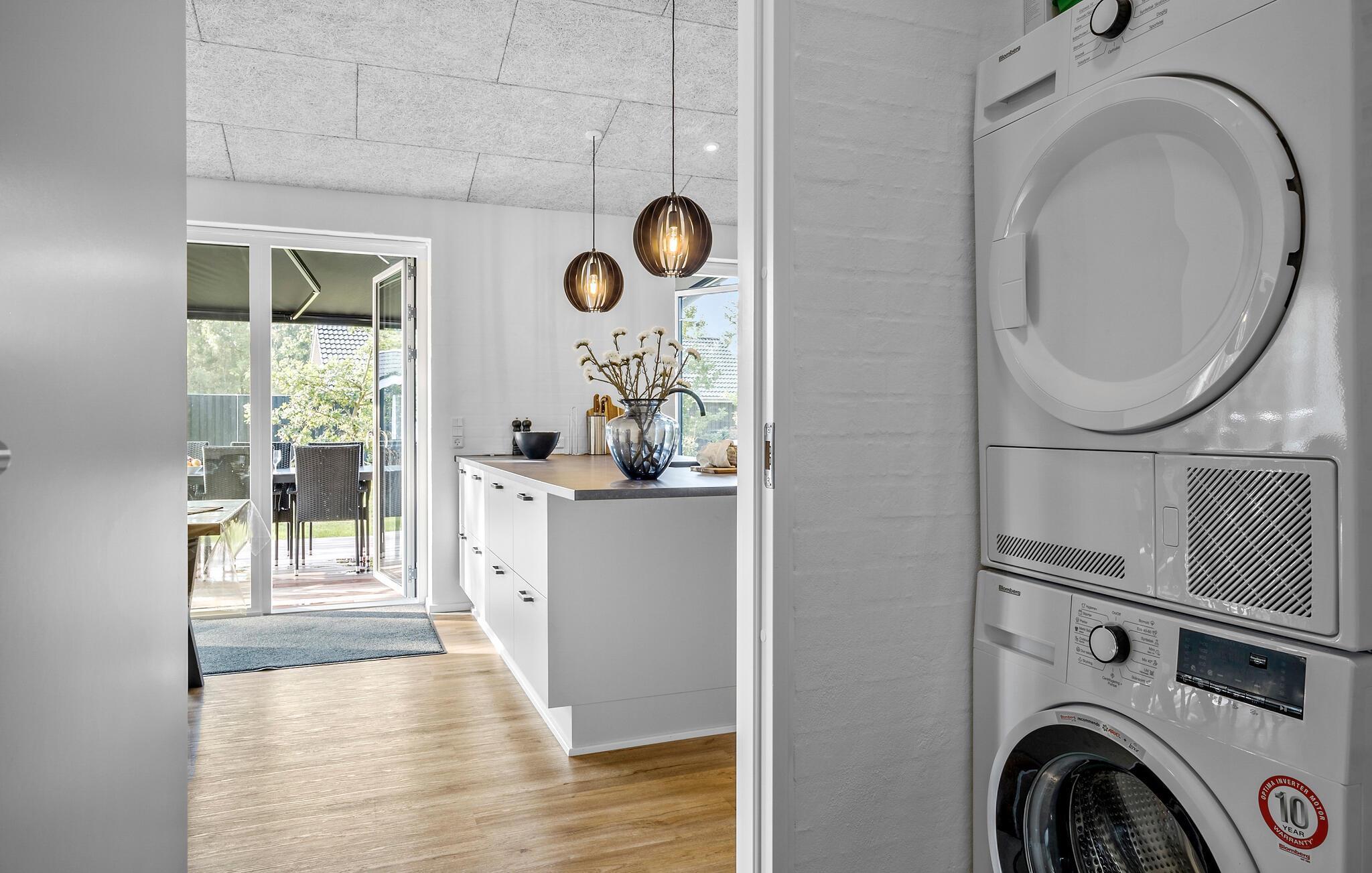 I dette moderne sommerhus har I plads til den store familie eller vennegruppen. I kan starte dagen med at lave lækker morgenmad i det åbne køkken til hele holdet, og nyde det om det lange spisebord. I forlængelse af køkkenet kan I slappe af i hyggekrogen med film eller et afsnit af jeres yndlingsserie.
