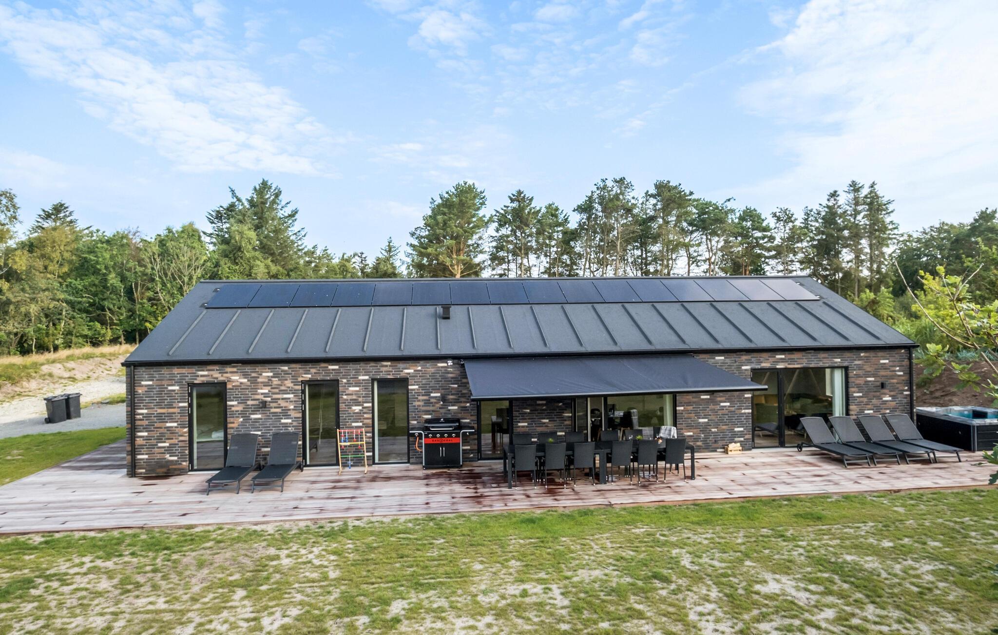 Moderne sommerhus med pool, spa og sauna nær strand i Helberskov.
