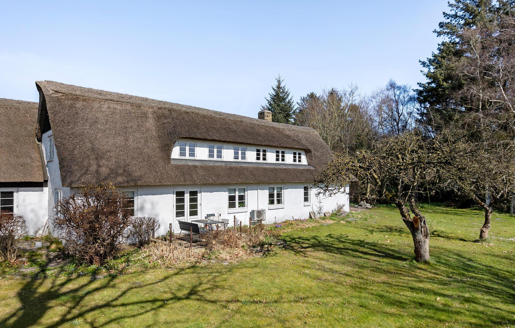 Hold en afslappende ferie i stråtækt sommerhus med stor have og masser af udendørs plads.