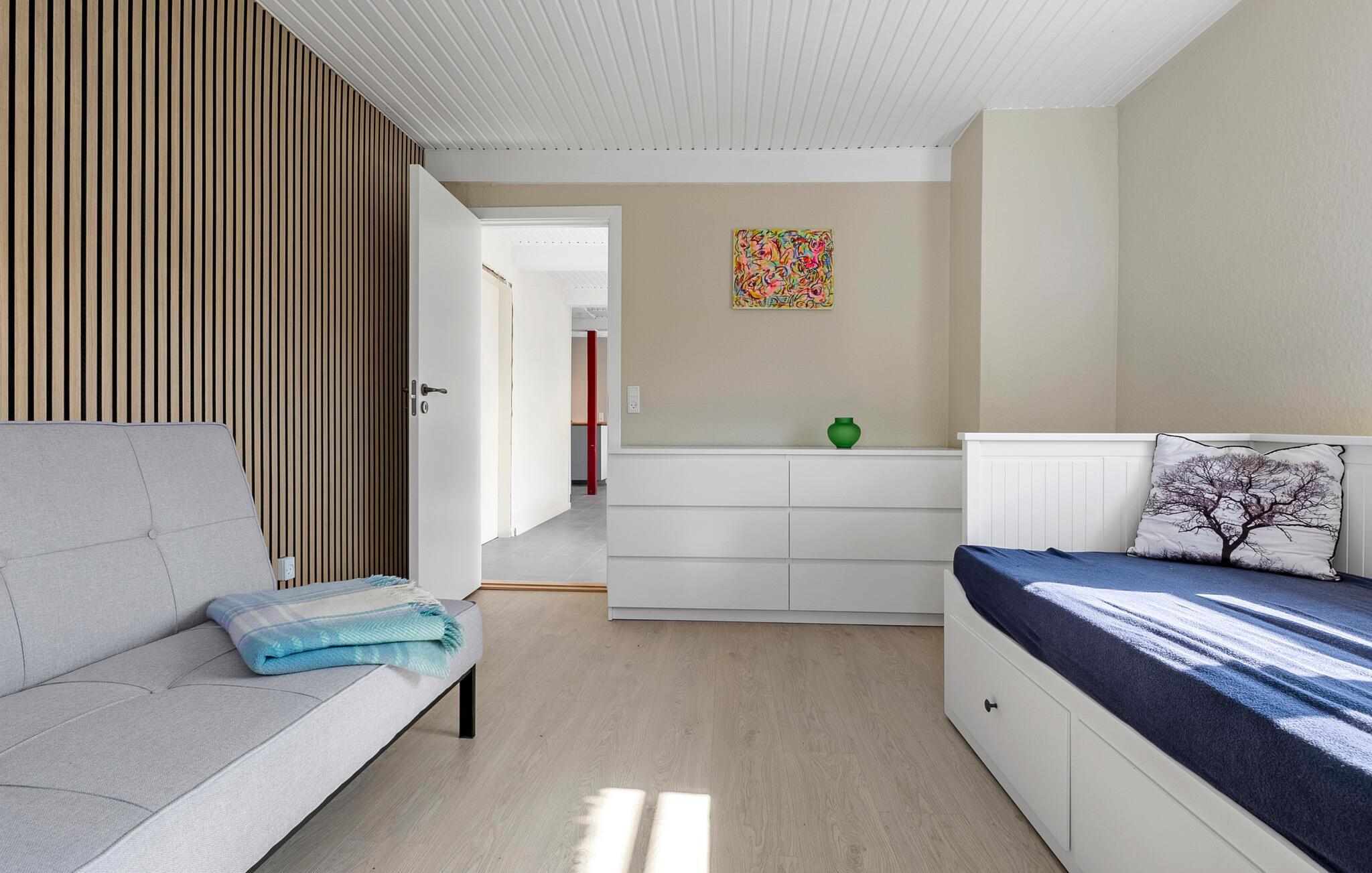 Soveværelse (nr. 1) - 1 Soveplads. (Enkeltseng(e)). 2 Sovepladser. (Dobbeltseng(e)).