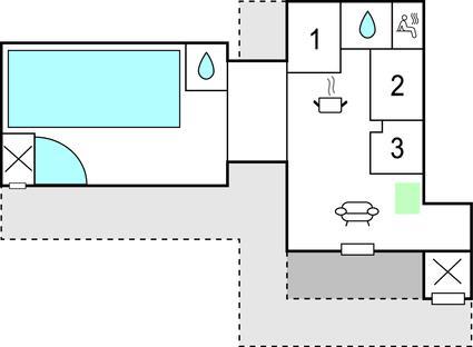 Badeværelse 6m2 (nr. 1) - WC. Varmt og koldt vand. Bruser