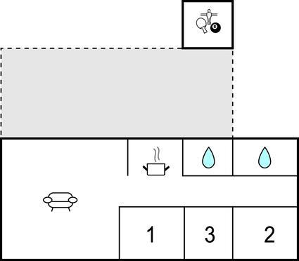 Badeværelse (nr. 1) - WC. Varmt og koldt vand. Bruser