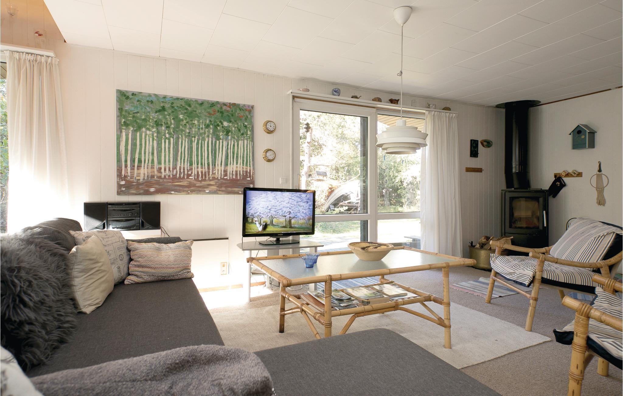 Det hyggelige feriehus kombinerer kærligt ældre og nyere møbler og skaber en indbydende atmosfære. Det lyse opholdsområde lægger op til at slappe af, mens det funktionelle køkken byder på alle bekvemmeligheder til jeres feriemåltider. I kan tilbringe selskabelige aftener eller nyde naturens fred og ro på den rummelige sydvendte terrasse med brændeovn.