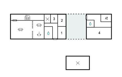 Badeværelse (nr. 1) - WC. Varmt og koldt vand. Bruser