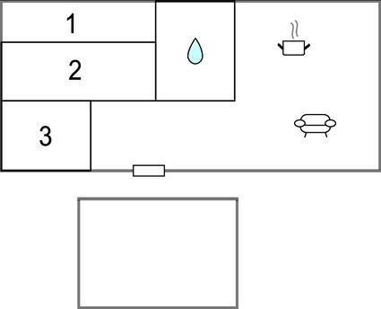 Badeværelse (nr. 1) - WC. Varmt og koldt vand. Bruser