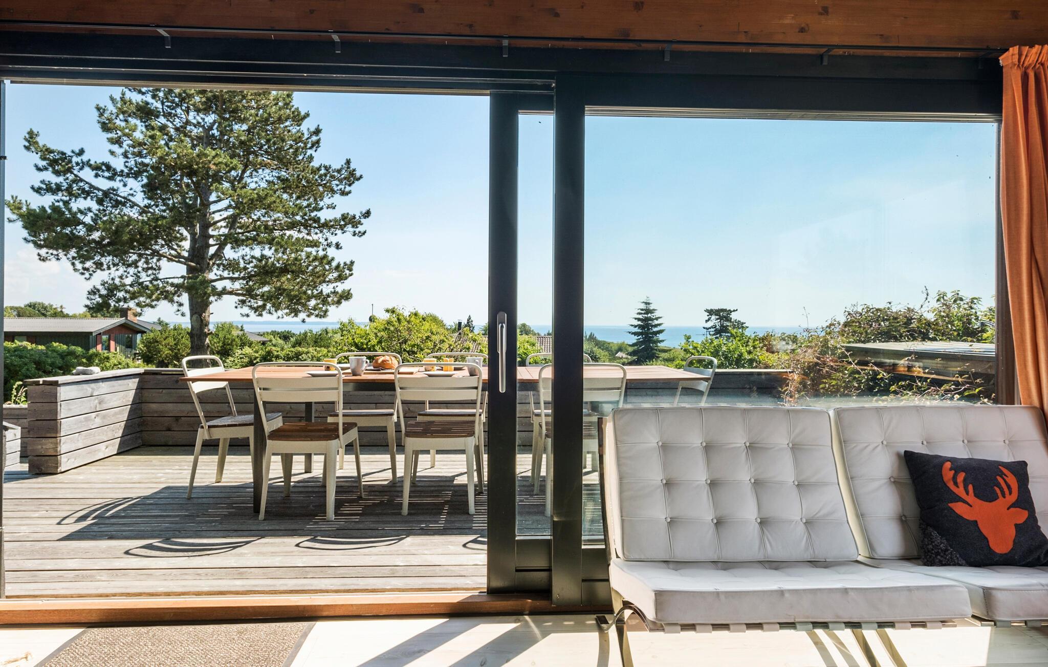 Rummeligt træhus med havudsigt, stor terrasse og hyggelig brændeovn på Røsnæs.