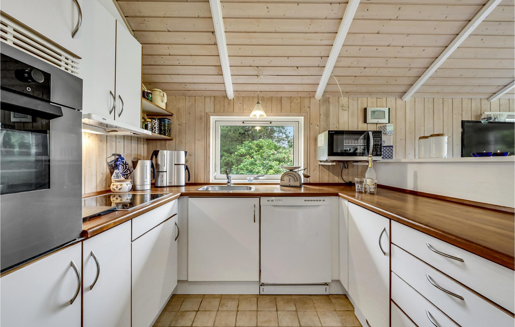Huset består af 3 soveværelse,r 1 badeværelse med gulvvarme ogspabad, en hyggelig og rummelig opholdsstue samt et åbent køkken med spiseplads. Køkkenet er veludstyret med blandt andet kaffemaskine, opvaskemaskine og mikroovn. I opholdsstuen står der en motionscykel, så man kan få klaret dagens træning mens man ser TV eller nyder udsigten til en smukke naturgrund. Udendørs finder I en delvist overdækket terrasse med havemøbler og grill, så I let kan samle familien til hyggelige grillaftener.