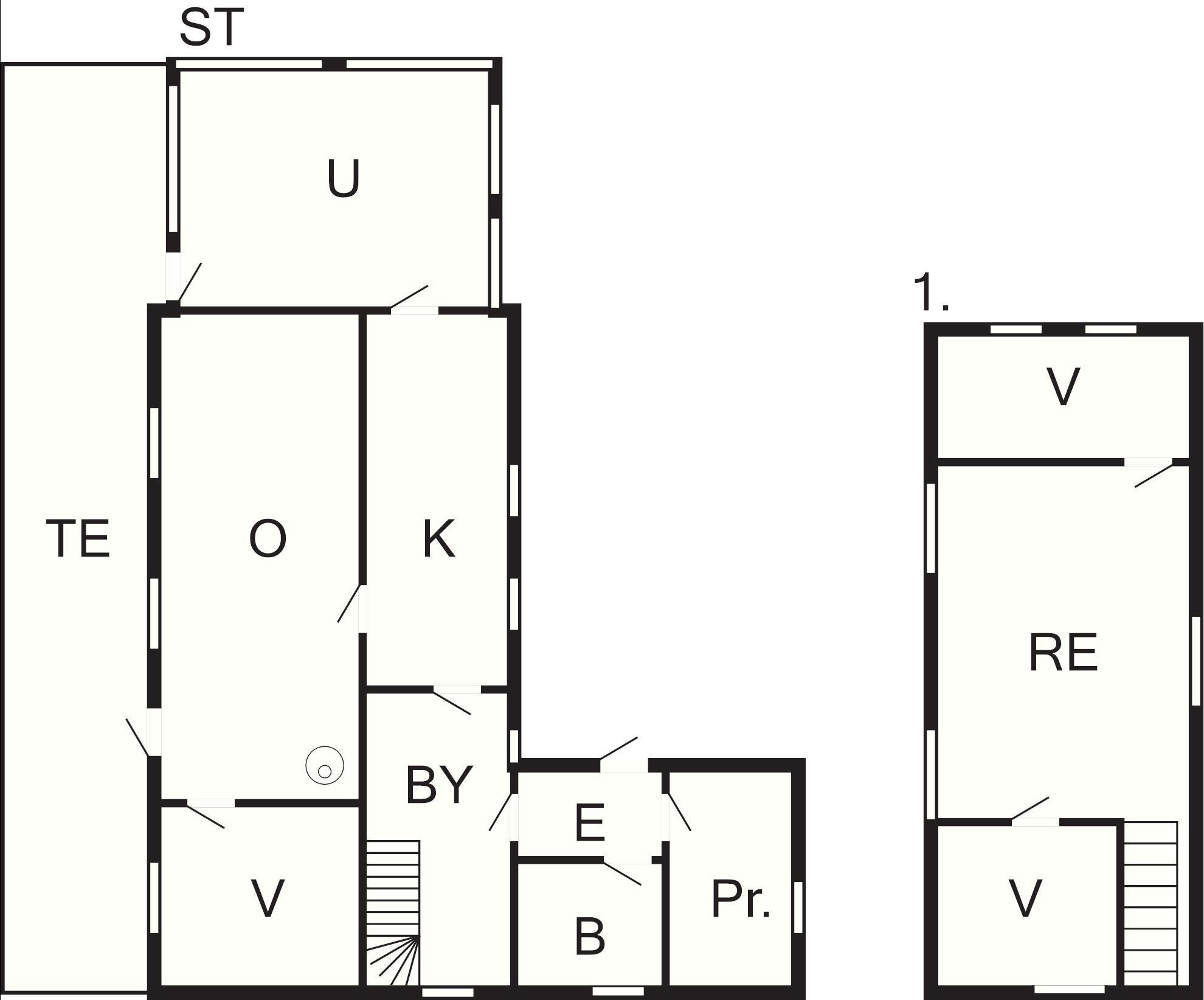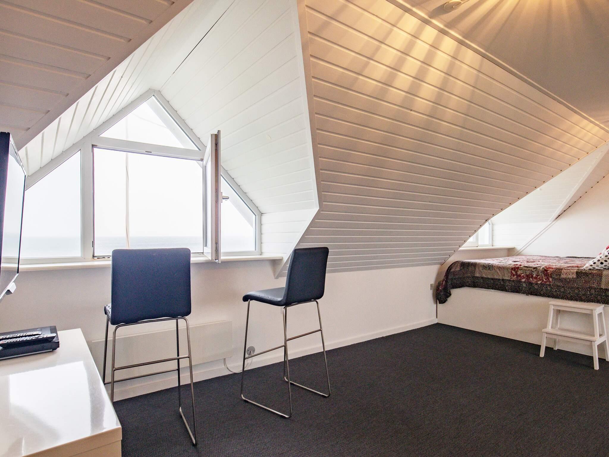 Huset har tre soveværelser, hvoraf der er to på 1. sal. Derudover er der en dobbeltseng på repos på 1. sal hvor man har udsigten over fjorden, repos er et gennemgangsrum til de to soveværelser.