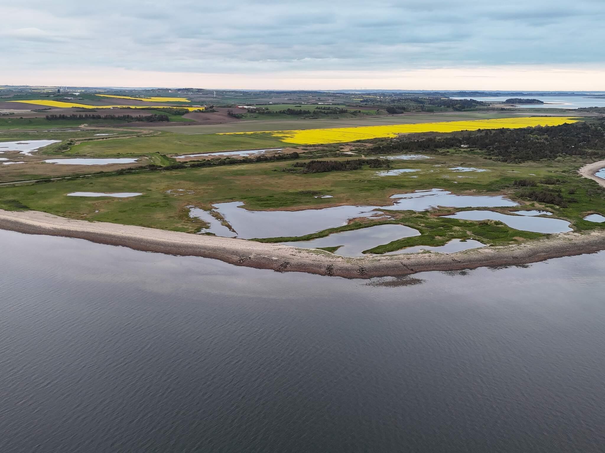 Sommerhus med privat stenstrand med kun en lille vej med lokal trafik mellem huset og stenstranden, beliggende kun ca. 25 meter fra vandkanten med en 180 graders flot panoramaudsigt over Limfjorden ved Helligsø Drag.Huset indbyder til afslapning og nydelse af udsigten i alt slags vejr.