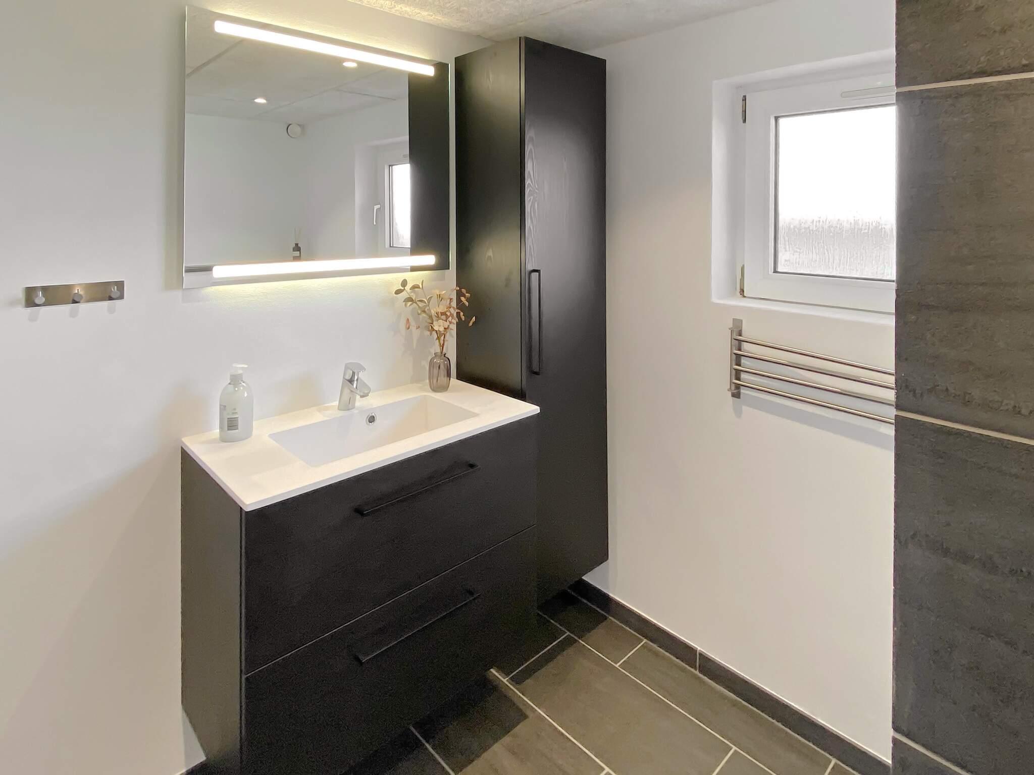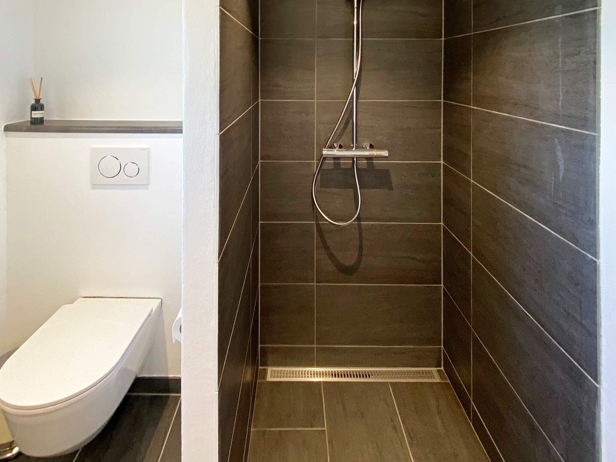Ny renoveret badeværelse med bruseniche, bademiljø samt gulvvarme. Derudover er der både vaskemaskine og tørretumbler.
