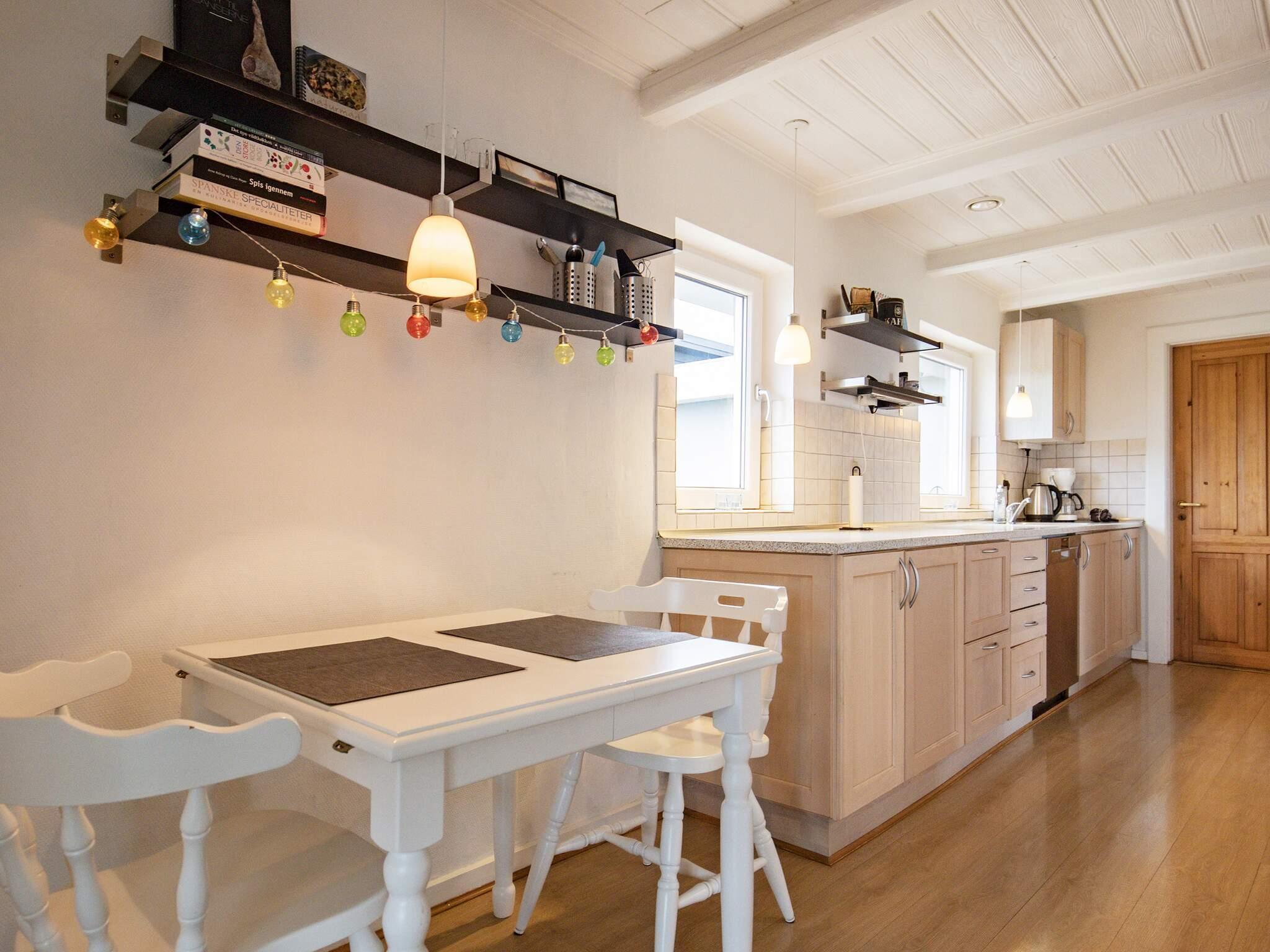 Der er separat køkken, som bl.a. tilbyder keramiske kogeplader (induktion), emhætte, mikroovn og køleskab samt separat fryser. Stuen er vel møbleret, gratis fibernet, dvd-afspiller samt fladskærms-tv med internationale kanaler. Derudover er der Chromecast, hvor I har mulighed for at streame egne tv-tjenester. Der er energivenlig varmepumpe samt brændeovn.