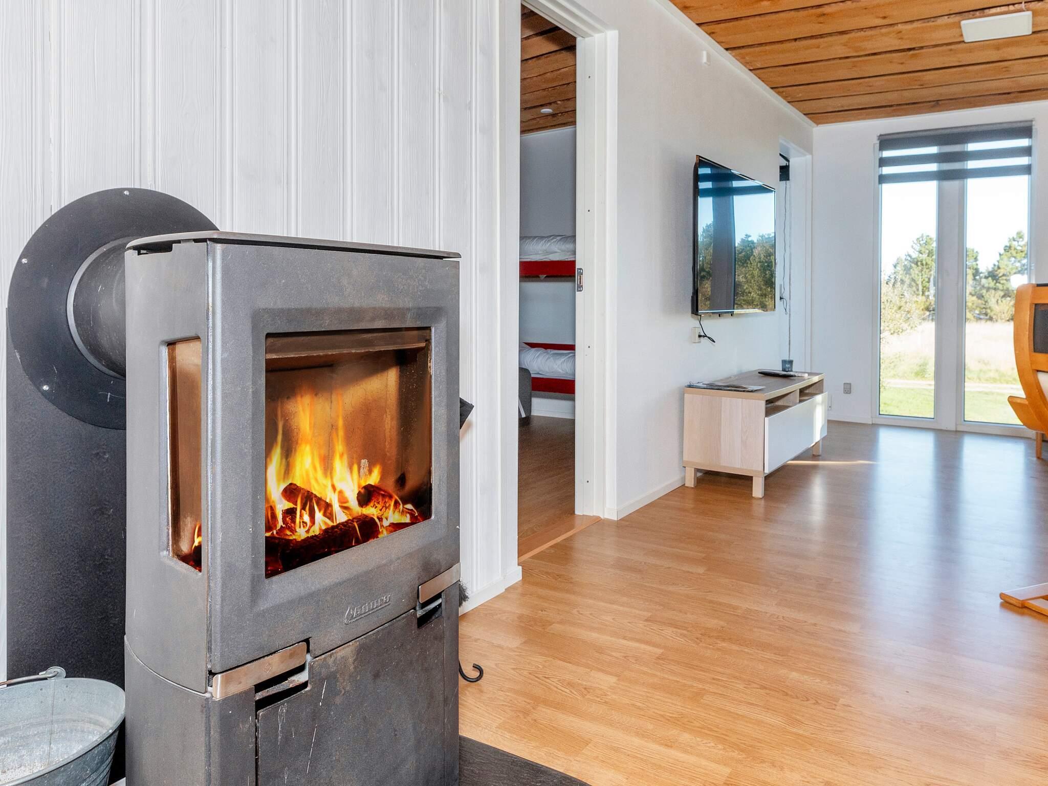 Huset er renoveret i 2024. Bl.a. er der nyt køkken i åben forbindelse med stuen. Her er god plads til indendørshygge. Tænd op i brændeovnen og hyg Jer med brætspil eller en god bog. Der er TV med Chromecast til streaming af egne tjenester.