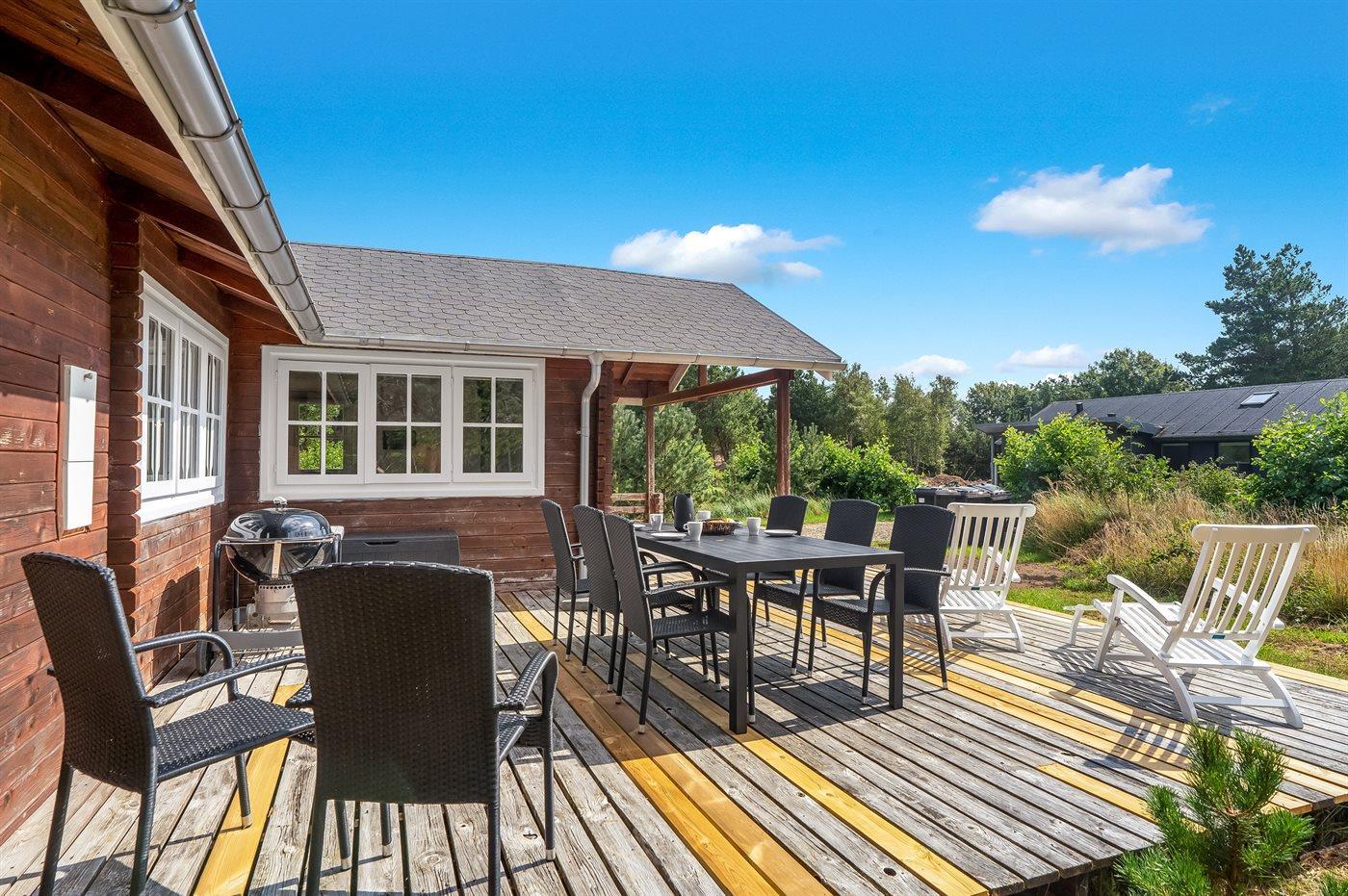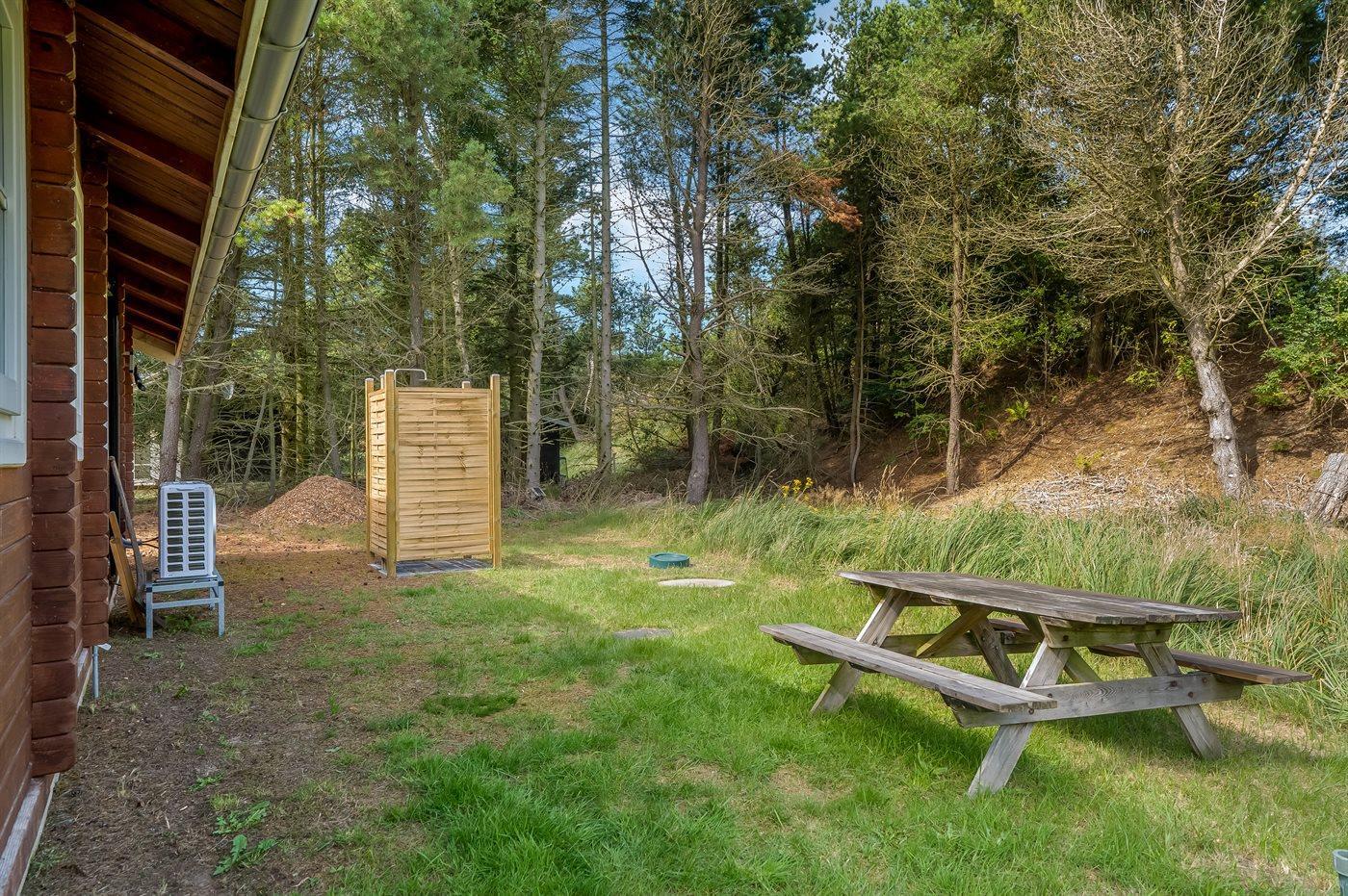 Ferieboligen er beliggende på en 1203 m² stor naturgrund. Der er 8000 m til havet. Der er 350 m til fjorden. Nærmeste forretning er beliggende i en afstand af 9000 m. Til ferieboligen hører åbent terrasseareal. Desuden er der overdækket terrasse. Udendørs bruser. Parkering ved ferieboligen.