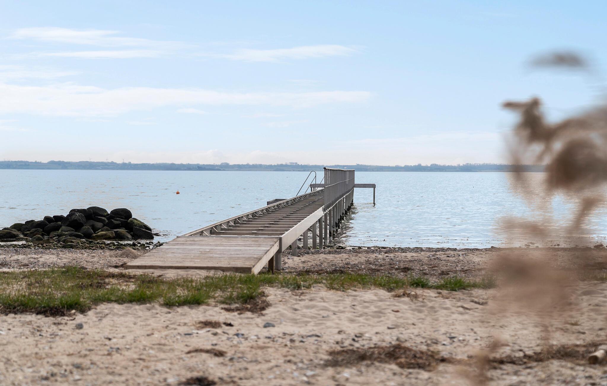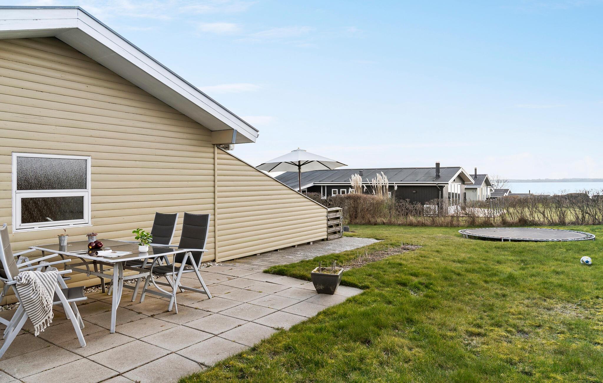 Hyggeligt feriehus med havudsigt og stor terrasse i naturskønne Helnæs Bugten på Fyn.
