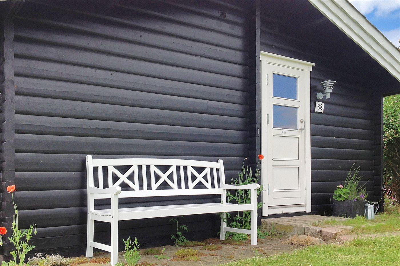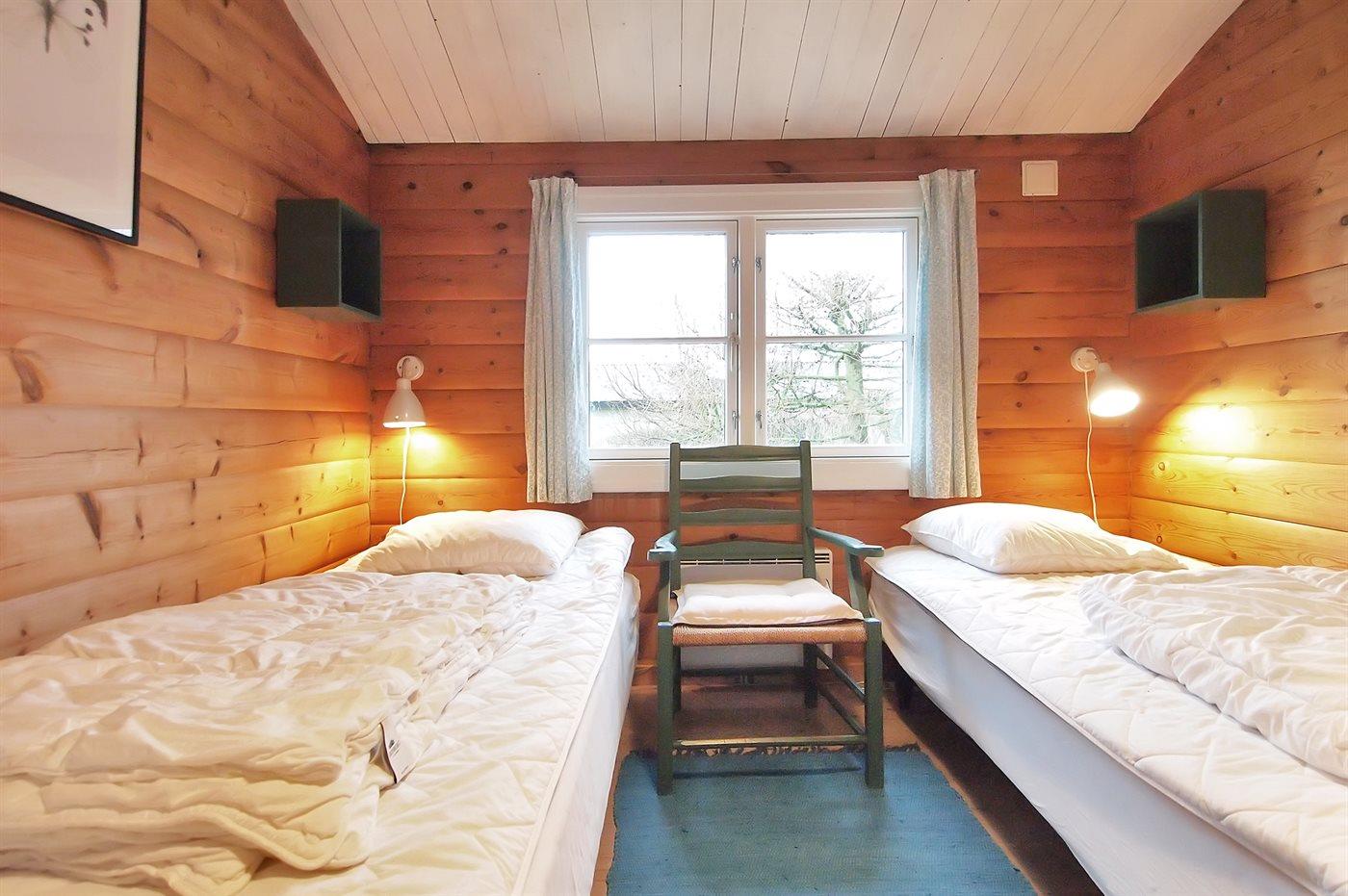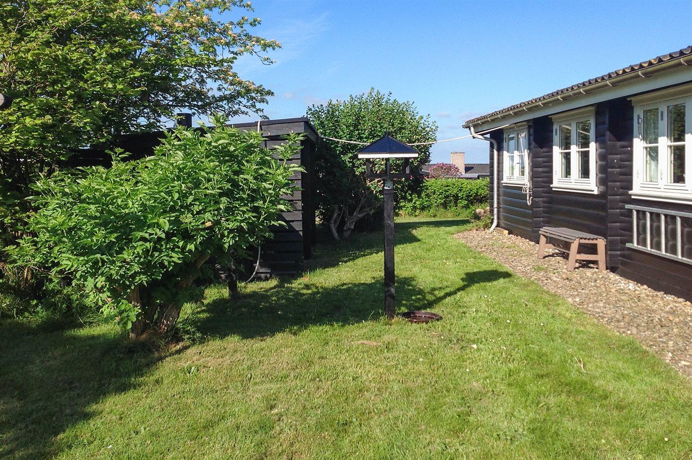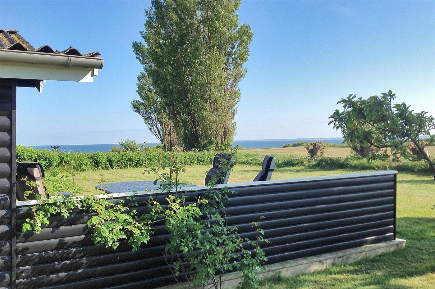 Skønt bjælkesommerhus, bygget i 1973 og moderniseret i 2009 med bl.a. nyt køkken og badeværelse. Huset ligger på en dejlig havegrund med udsigt over vandet fra såvel hus som grund. Til huset hører 2 nye, åbne samt overdækket terrasse med havemøbler. Indvendig er der bjælkevægge og -lofter. Afhøvlede, ludbehandlede trægulve overalt. Det flotte kvalitetskøkken er bl.a. udstyret med opvaskemaskine og komfur med induktions kogeplader. Pænt badeværelse med vinylgulv og bruseniche. Den hyggelige og pænt møblerede opholdsstue er udstyret med brændeovn, stereoanlæg og fladskærms-TV (fuld HD) med tyske programmer. Husets sovepladser fordeler sig på 3 soveværelser; 2 med dobbeltseng og 1 med 2 enkeltsenge. Af yderligere udstyr kan gratis, trådløs internetforbindelse nævnes (computer skal medbringes) og der er installeret energibesparende varmepumpe. Fryser i redskabsrum. Til børnene er der høj barnestol og sandkasse til rådighed. Et dejligt hus i fredelige og børnevenlige omgivelser. Der er gode fiskemuligheder i nærheden.