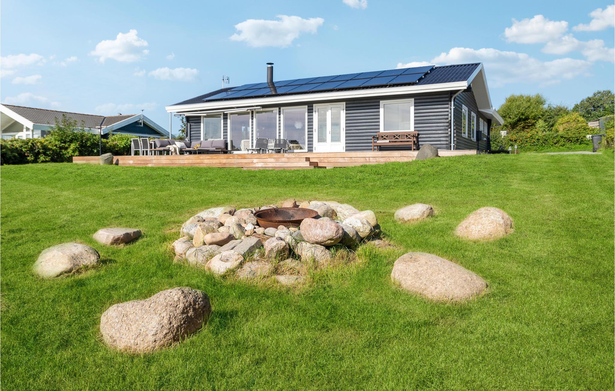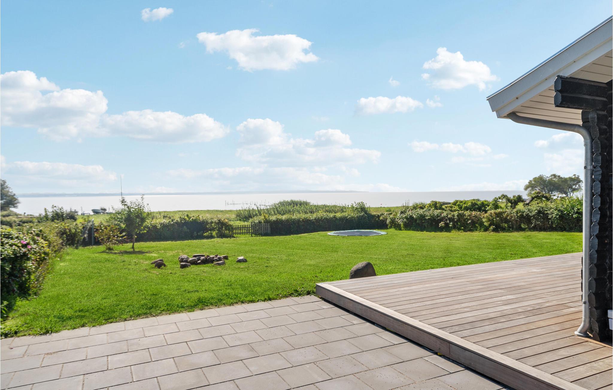 Velkommen til Helnæs og dette store energivenlige sommerhus, hvor I kan tilbringe nogle skønne dage i langsomt tempo. Læn jer tilbage i den hyggelige stue og nyd udsigten over grunden og vandet. Køkkenet er udstyret med flotte, moderne faciliteter, så det bliver en ren fornøjelse at hygge sig med madlavningen. I opholdsrummet er der et dejligt lys og stemningsfulde indretningsløsninger, så her får I gode rammer til måltiderne og de rolige aftener på sofaen. Mens børnene hopper på trampolin eller spiller fodbold, kan I sætte jer med en god bog eller lave strækøvelser på terrassen. De lune dage slutter med grillmad og den fantastiske udsigt over bugten.