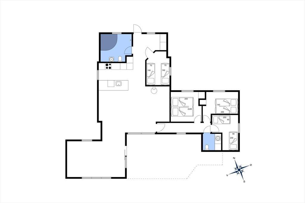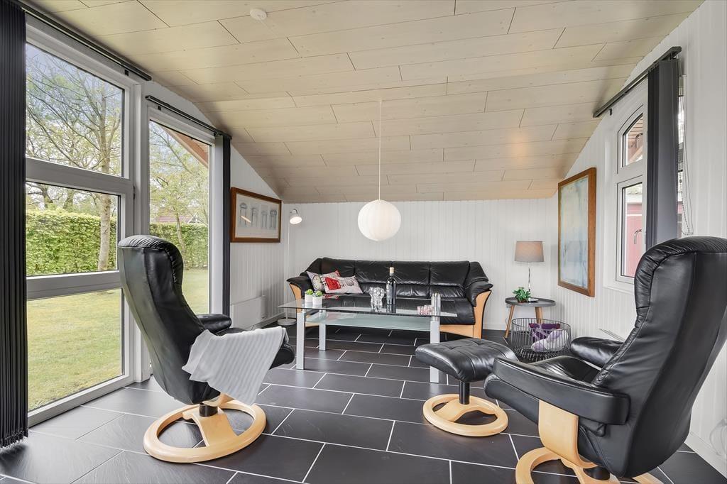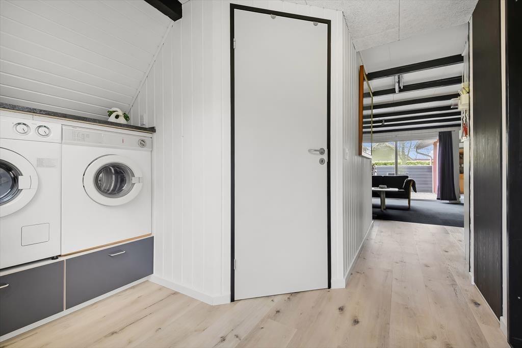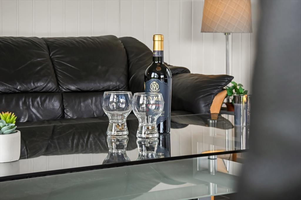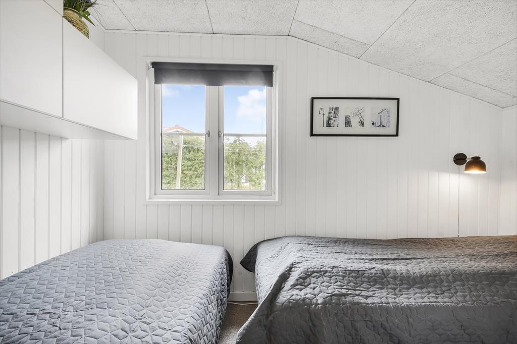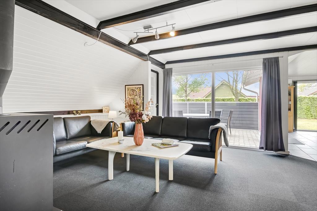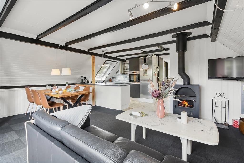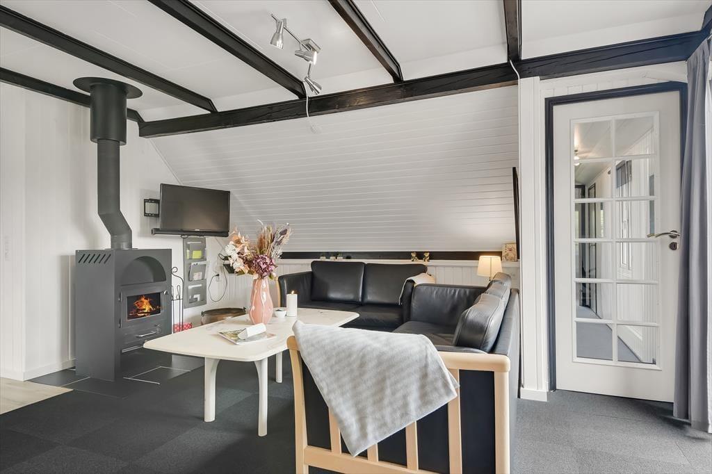 Inden døre i det 90 m2 store sommerhus finder I alle komponenter til at kunne leve et komfortabelt ferieliv – lige fra et veludstyret køkken i det store opholdsrum til andre praktiske faciliteter som vaskemaskine og tørretumbler på gæstetoilettet. Spabadet på badeværelset er en af husets mere luksuriøse detaljer, mens brændeovnen står klar til at skrue op for både hyggestemning og temperaturen, når I samles i stuen med varme drikke, snacks og måske en god film på TV. Soveværelser er der i alt fire af, hvoraf to er indrettet med dobbeltseng. Det tredje værelse er indrettet med to enkeltsenge og det fjerde med en enkelt, så i alt kan I samles syv personer her i huset.
