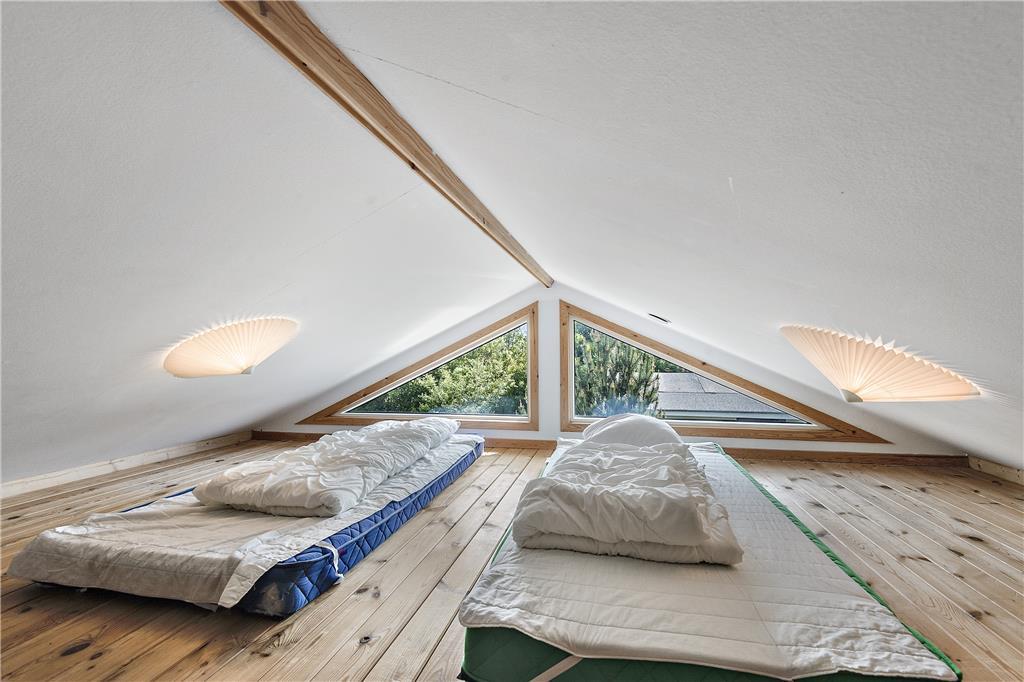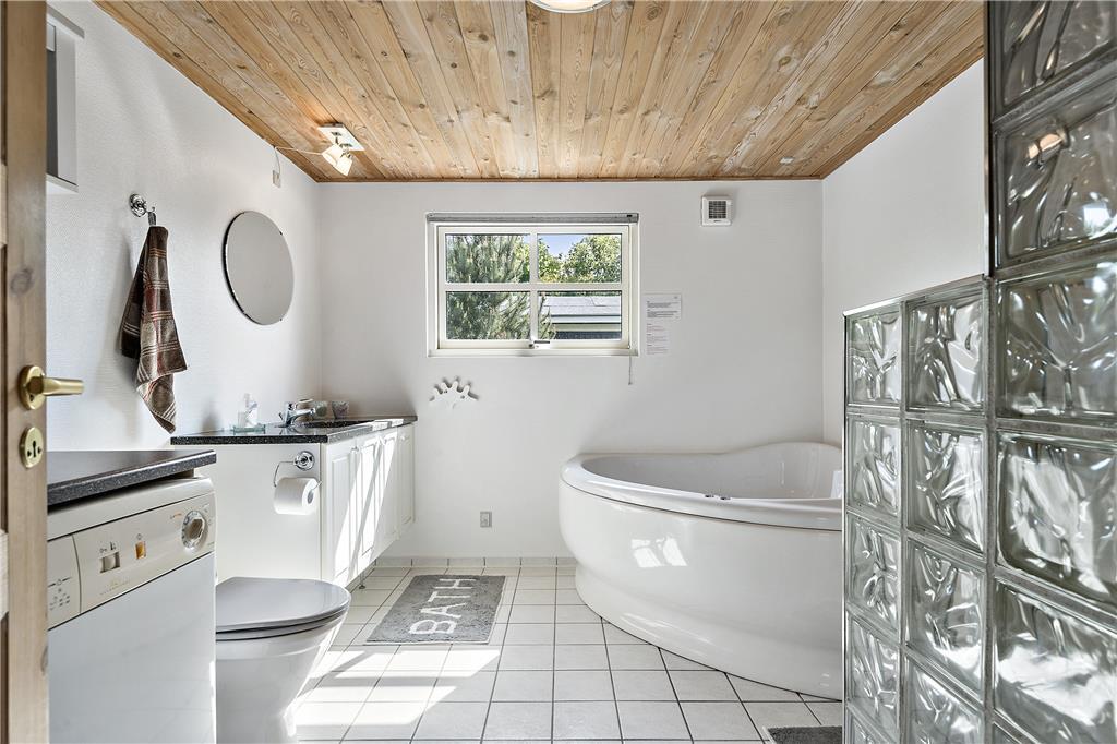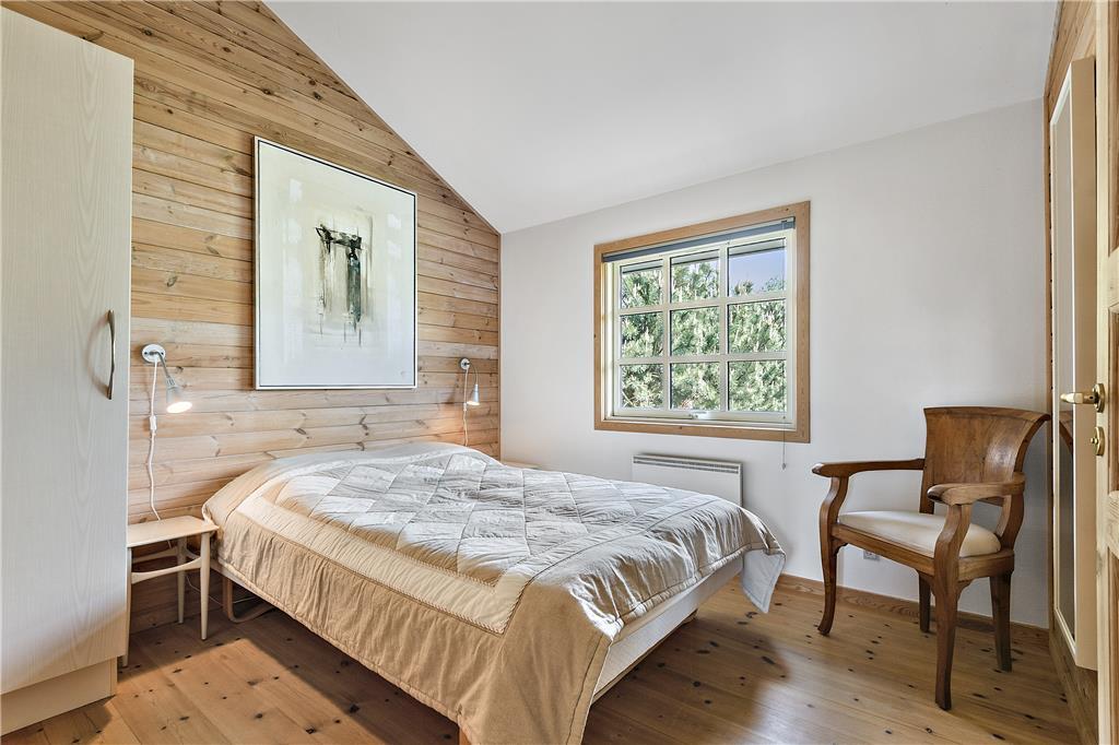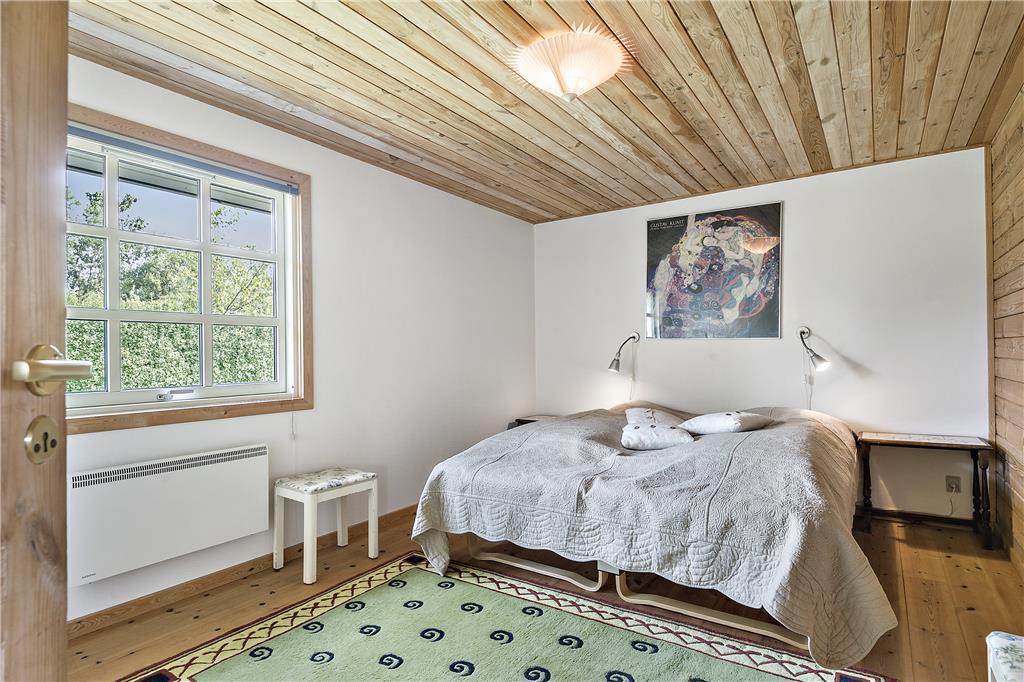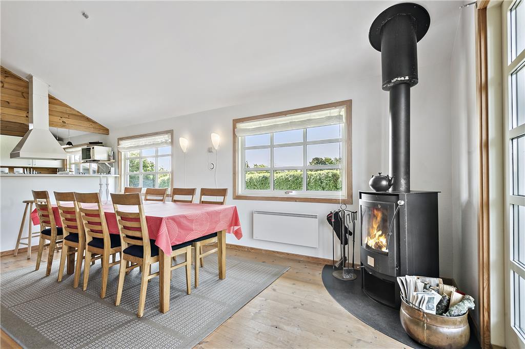Her I huset balanceres der fint mellem klassisk charme og moderne komfort: Rummene er lyse og luftige med store vinduespartier, mens de rustikke indervægge og andre detaljer i træ er noget af det, der får det til at føles som et vaskeægte sommerhus. Stuens brændeovn bidrager også til den gode stemning, og fra entréen fører en stige op til en hems, der er perfekt som hyggekrog og ekstra soveplads. Badeværelsets hjørnespa gør det til en luksuriøs oplevelse at gå i bad, og i husets åbne køkkenafdeling er der glimrende forhold, når I vil kokkerere. Sommerhusets tre soveværelser er alle indrettede med gode senge og garderobeskabe – og så er der for øvrigt barneseng og barnestol til rådighed for børnefamilier.