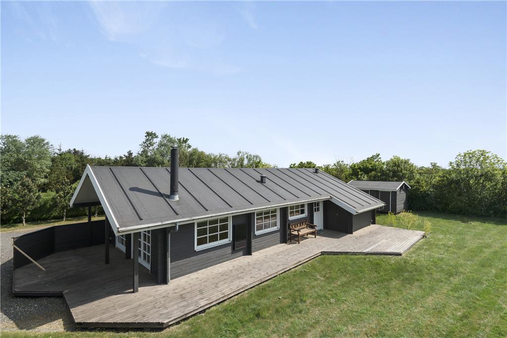 Det er oplagt at tilbringe en stor del af ferien ude under åben himmel, når vejrguderne er i det lune hjørne. For når solen står højt på himmelen, er det skønt at sidde på sommerhusets store og delvist overdækkede terrasse – eller alternativt lege på græsplænen i haven, der afskærmes af tæt randbeplantning.