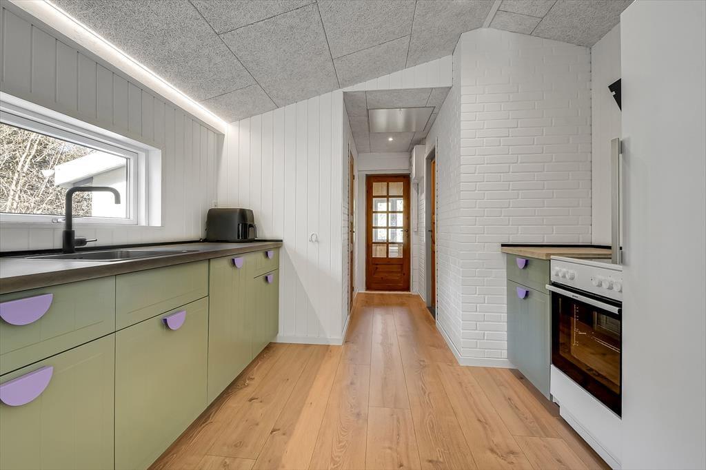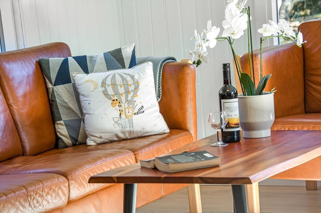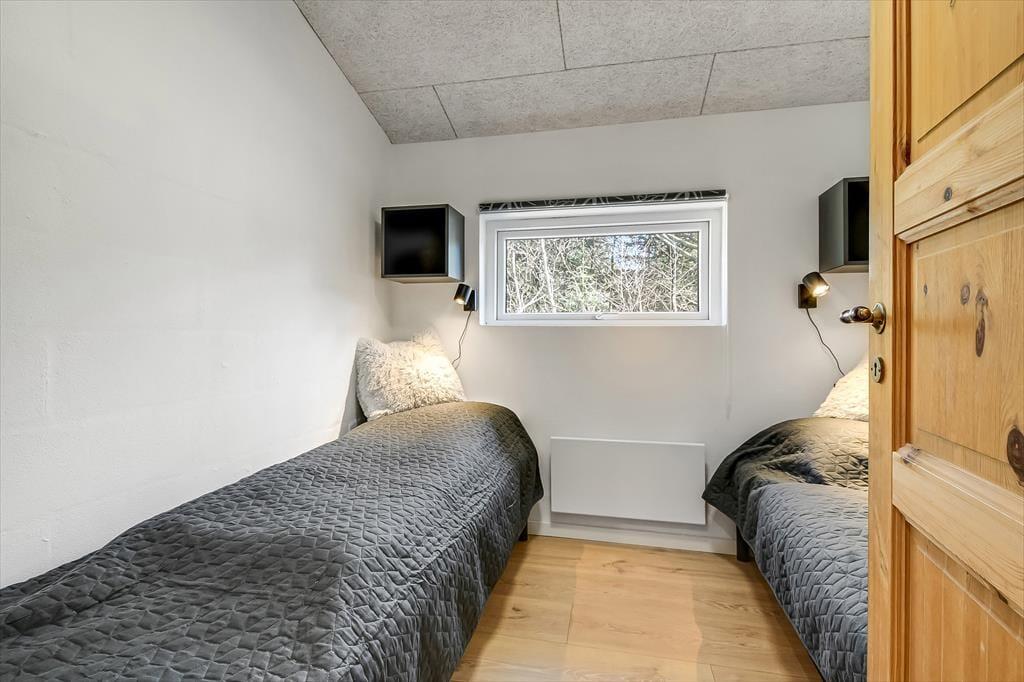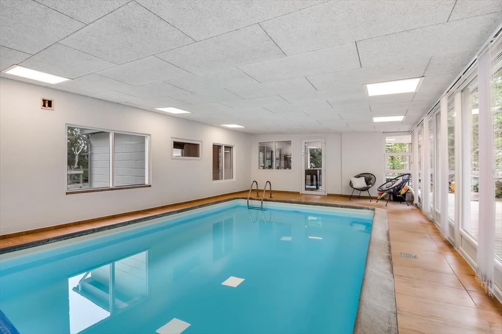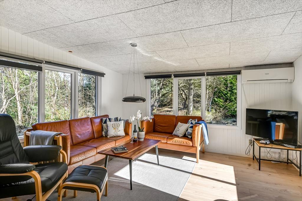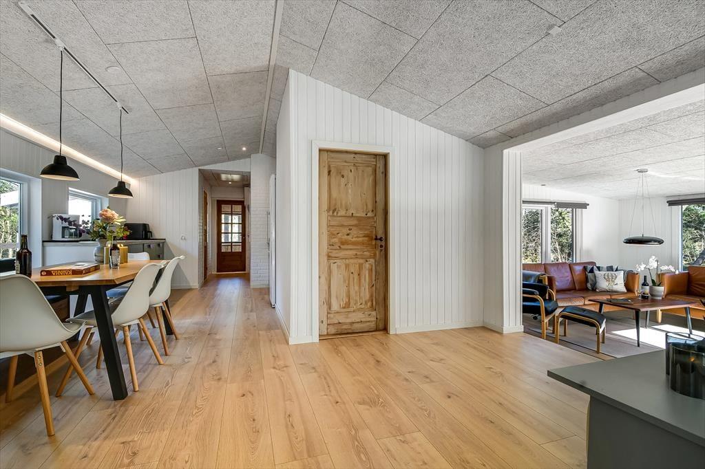 Det lyse sommerhus er med sine 161 m2 dejligt stort og rummeligt, og med tre soveværelser og to badeværelser passer planløsningen perfekt til seks personer. Efter seneste renovering fremstår alle rum lyse og indbydende, og ikke mindst opholdsmiljøet er et herligt sted at samles: Her ligger køkken-alrum og stue i åben forbindelse, blot adskilt af et par trin, så det er nemt at bære eftermiddagskaffen hen til sofaafdelingen, hvis I vil drikke den i nærheden af brændeovnen. Hvis I ikke kan sidde stille, kan I rykke ind i aktivitetsrummet for at spille bordfodbold eller dyste i arkadespil – når ikke I hellere vil plaske, svømme og lege i sommerhusets dejlige swimmingpool.