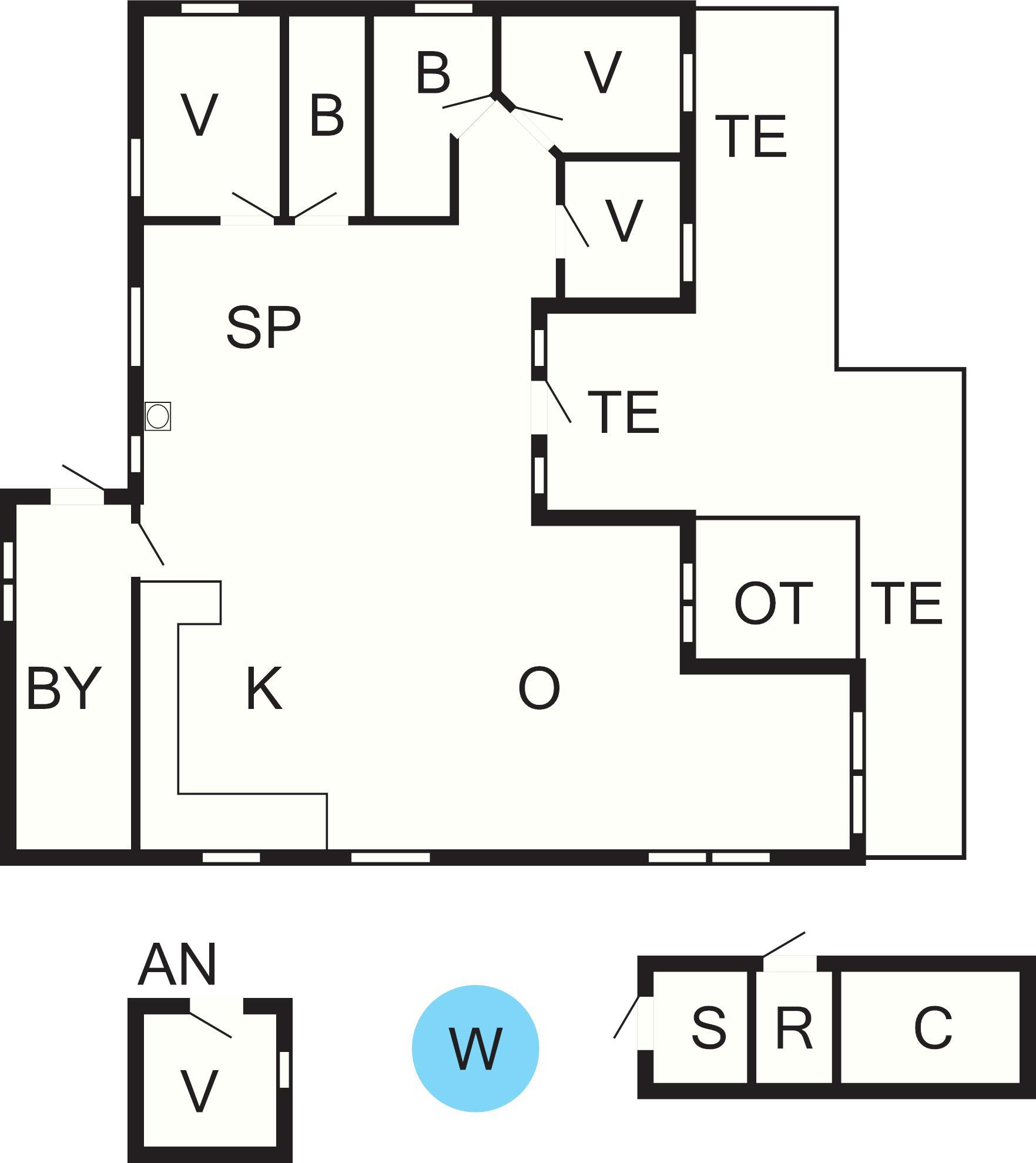 3 Soveværelser: (1DS)+(1DS)+(2S), barneseng