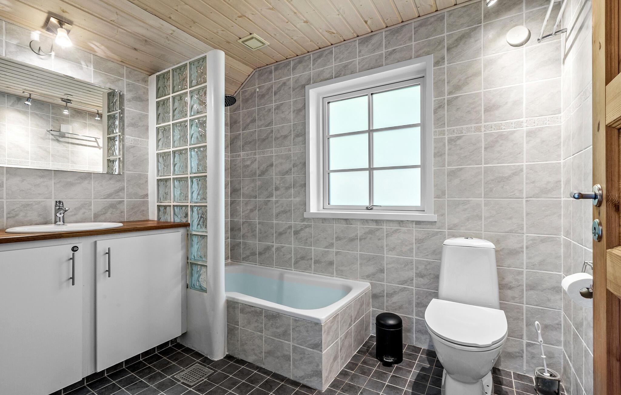 Badeværelse (nr. 1) - WC. Varmt og koldt vand. Bruser og badekar