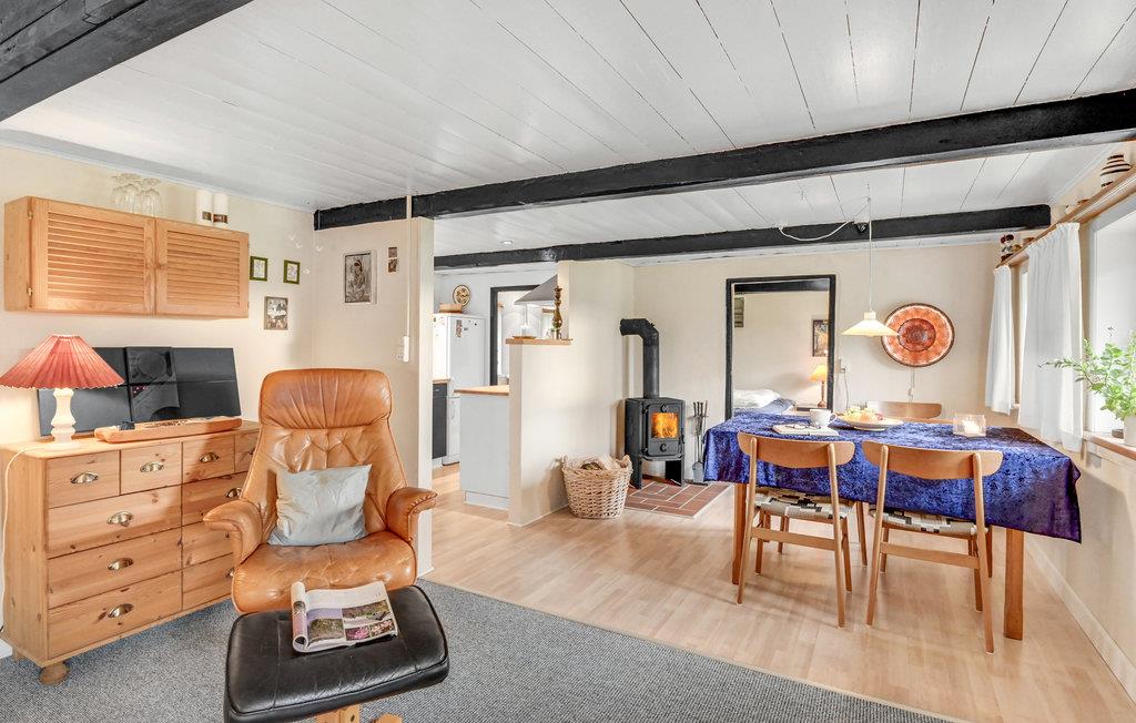 Trænger I til en ferie med fuldstændig fred og ro til krop og sind? Dette hus ligger dejligt afsondret og har en god størrelse til en familie. Pladsen fordeler sig over et stort spisekøkken, hvor I kan tilberede jeres lækre ferieretter og nyde dem sammen ved spisepladsen med udsigt til markerne, mens ilden buldrer i brændeovnen. Der er behagelig gulvvarme i det ene af de to badeværelser og masser af plads i det rummelige bryggers, hvor der kan stå alt fra barnevogne til gummistøvler.