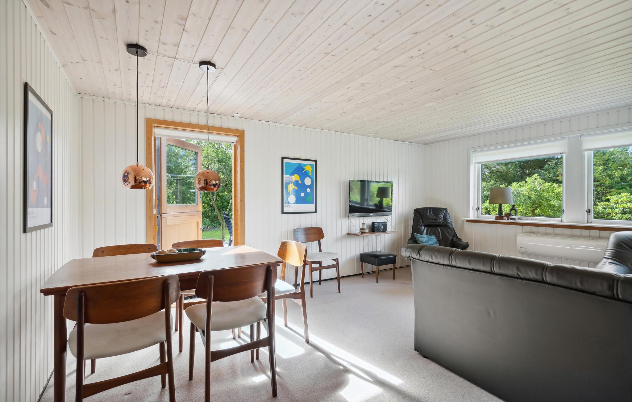 Kun få hundrede meter fra Ringkøbing Fjord byder dette smukt beliggende feriehus jer velkommen til Hemmet Strand. Det er smagfuldt og kærligt indrettet i retrostil, som indbyder til en afslappet og hyggelig ferie. Tilbring skønne timer i spiseområdet i stuen eller i udestuen med udsigt over det grønne. På kølige dage kan I slå benene op i sofaerne nær brændeovnen og dyste i kortspil eller læse en god bog. Her venter uforglemmelig familietid med kagesmovs og forfriskninger. På solrige dage kan I slå jer ned på terrassen med en kop kaffe og nyde idyllen. Børnene finder masser af plads at lege på i haven med flere gamle træer og hyggekroge. Den nærmeste legeplads kan nås til fods, og det samme kan fjorden, som indbyder til badesjov og hyggelige gåture.