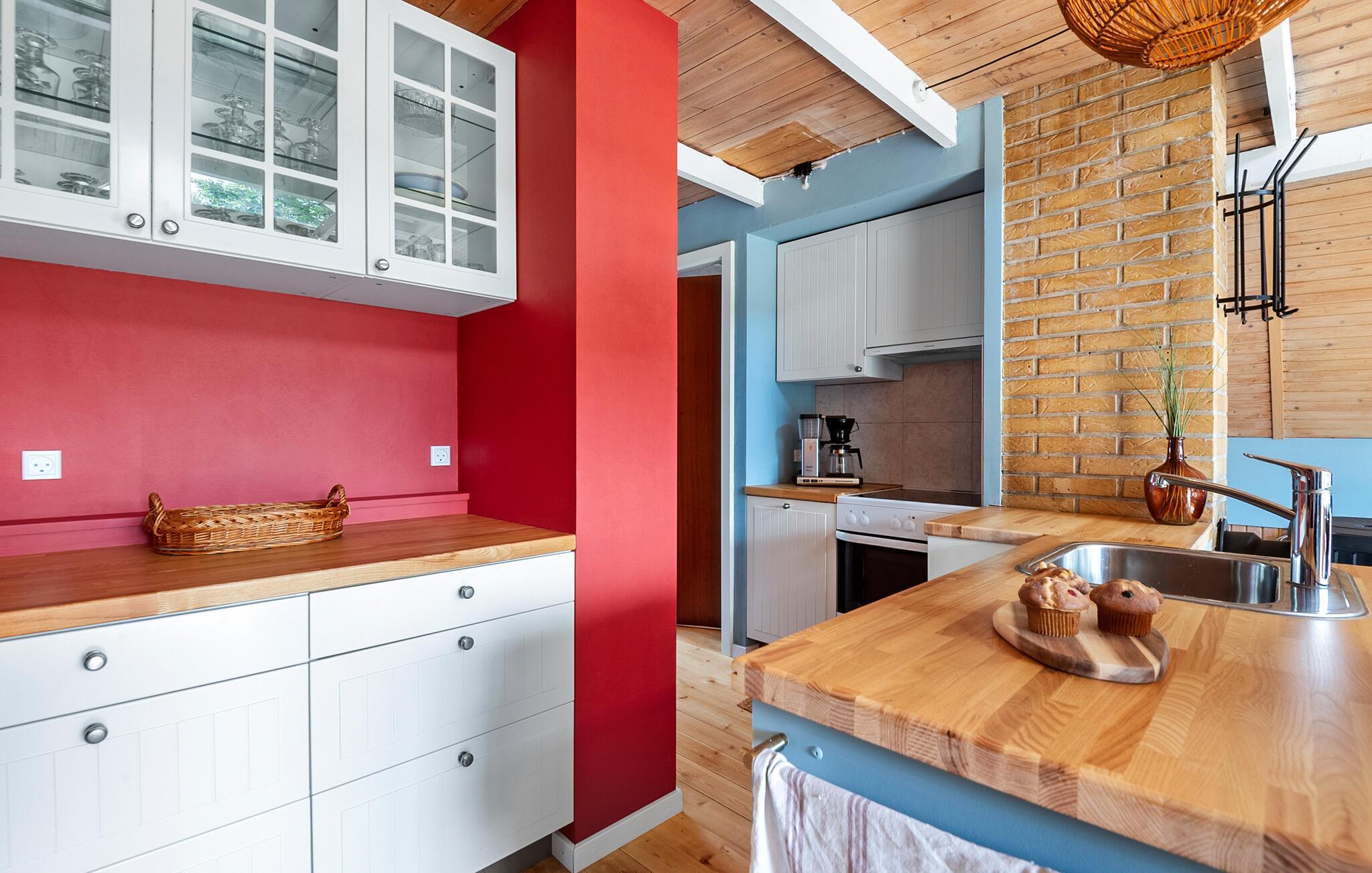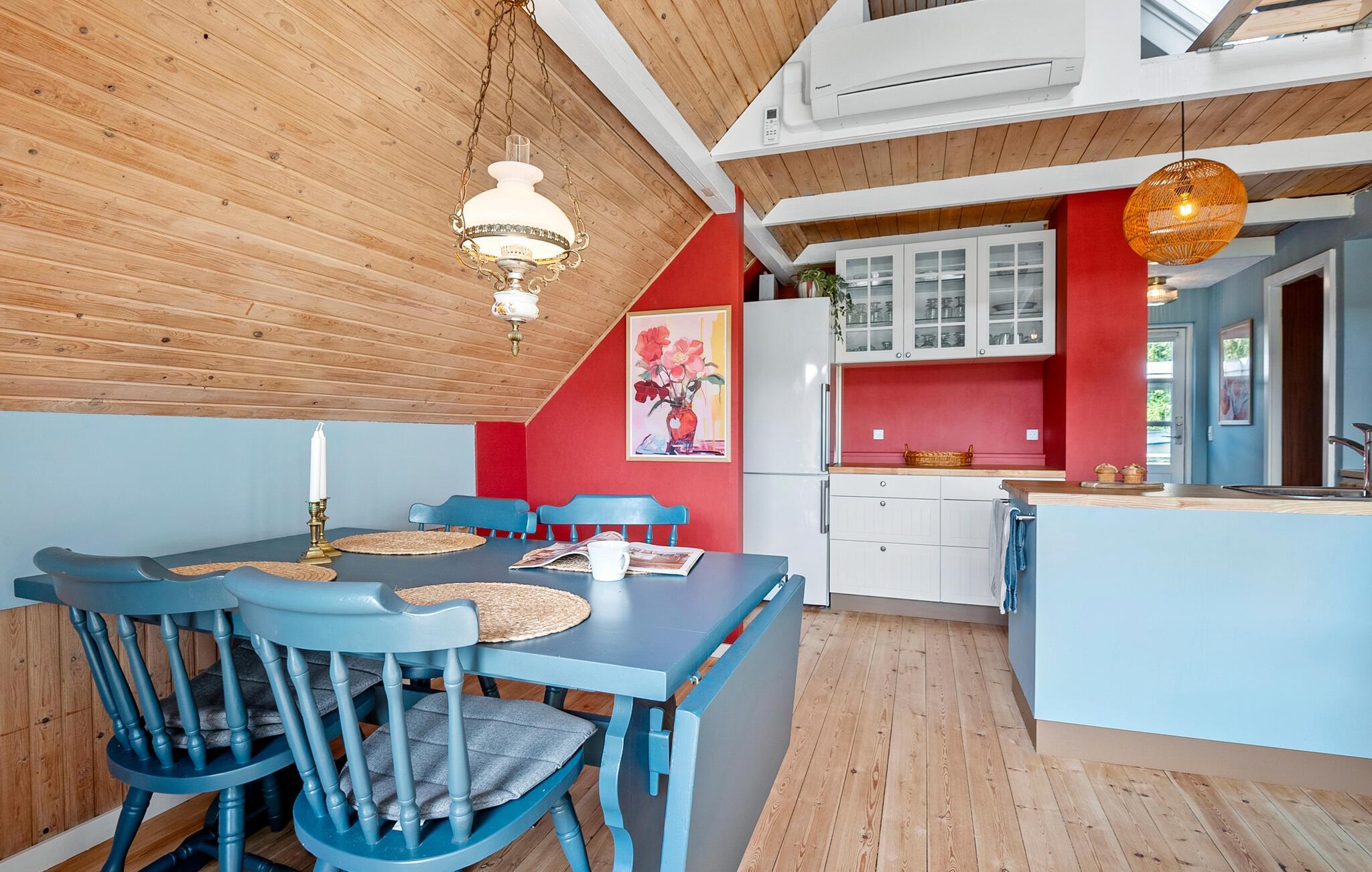 Dette lyse og hyggelige hus tilbyder alt, hvad I behøver for et behageligt og ukompliceret ophold: en lys opholdsstue med en stor sofagruppe, smukke farvenuancer og rustikke træmøbler. Slap af i denne hyggelige atmosfære, og nyd tiden med at læse, lytte til musik eller se tv.