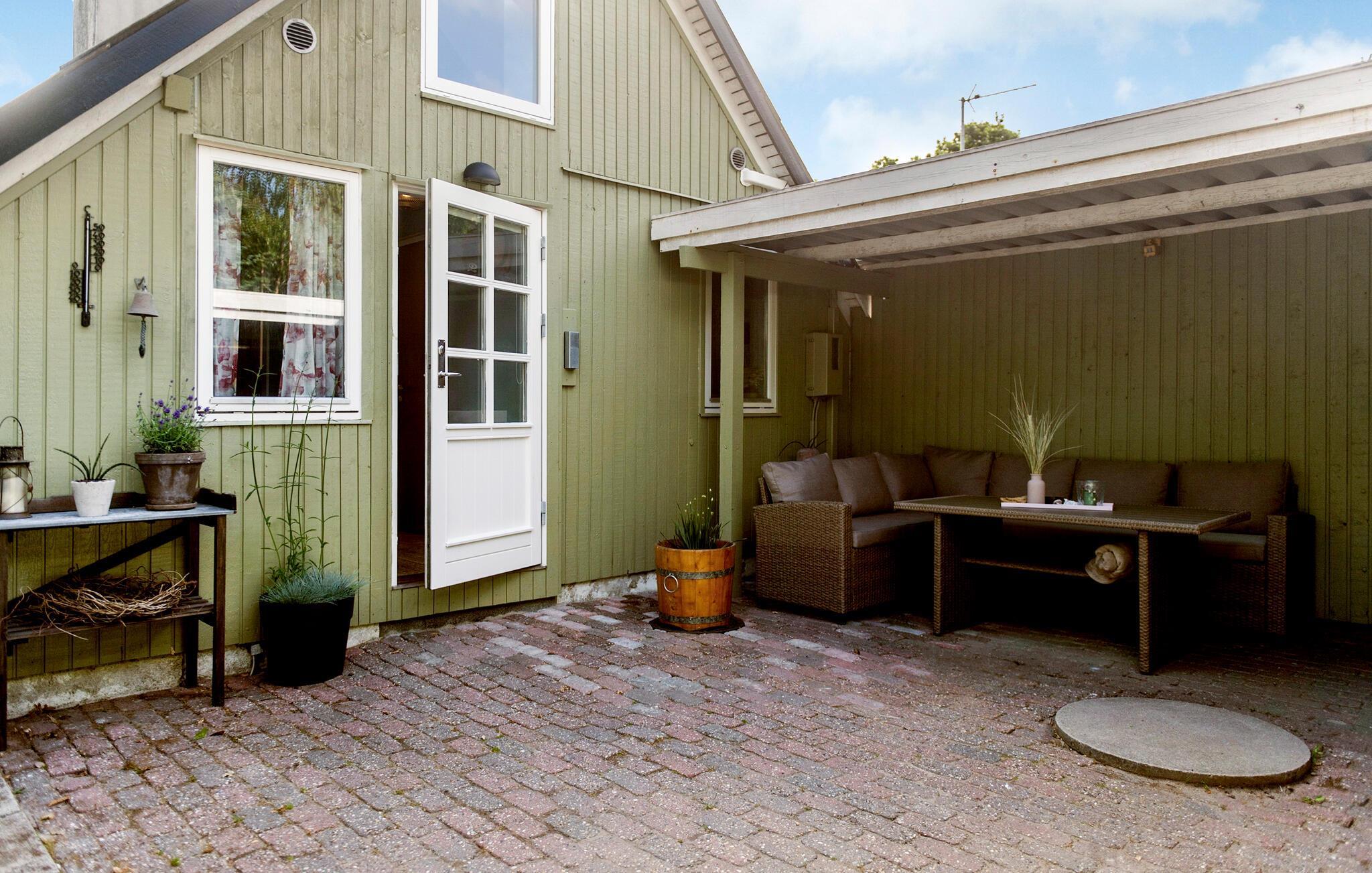 Rustikt feriehus ved Ringkøbing Fjord med terrasse, indhegnet have og nær strand.