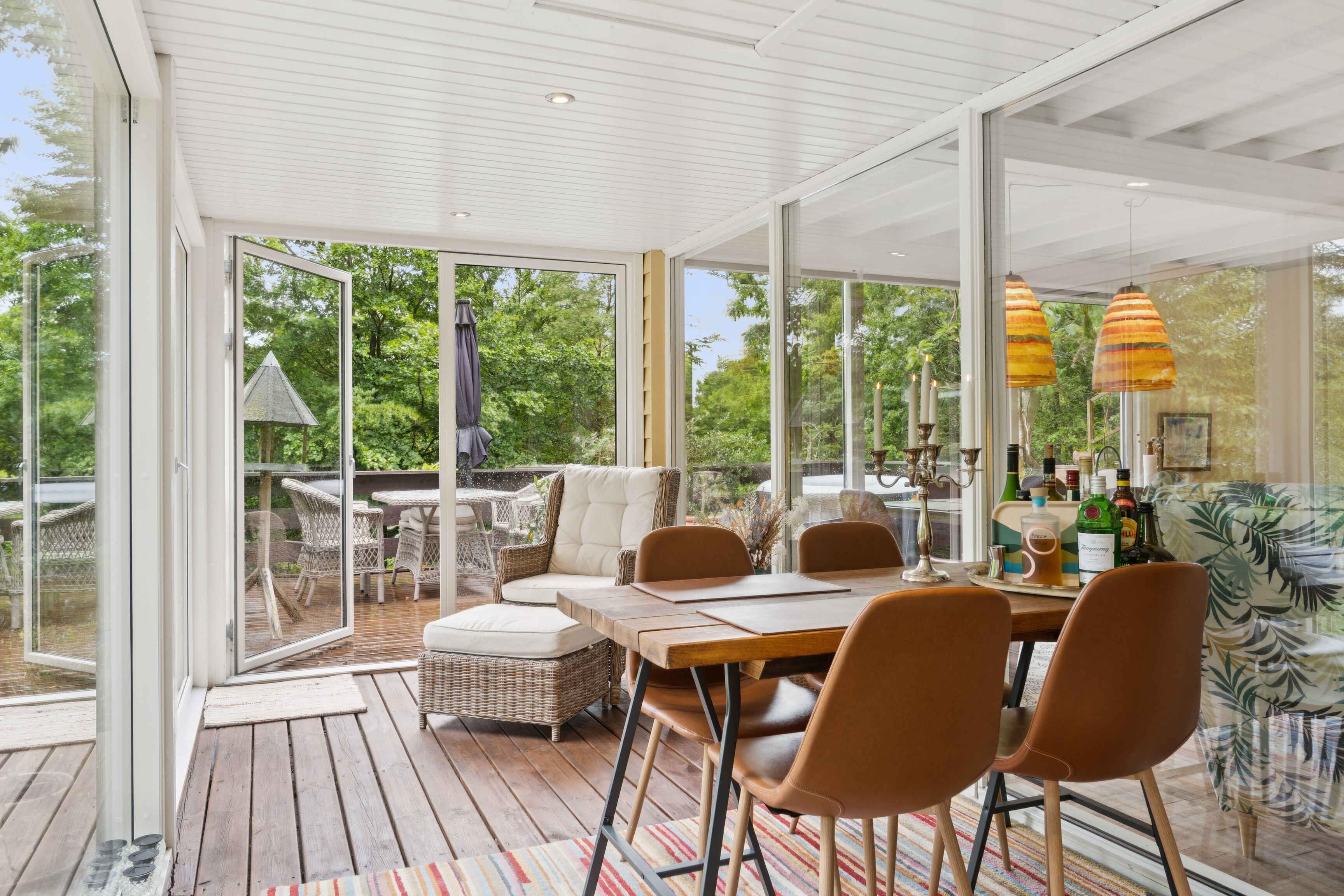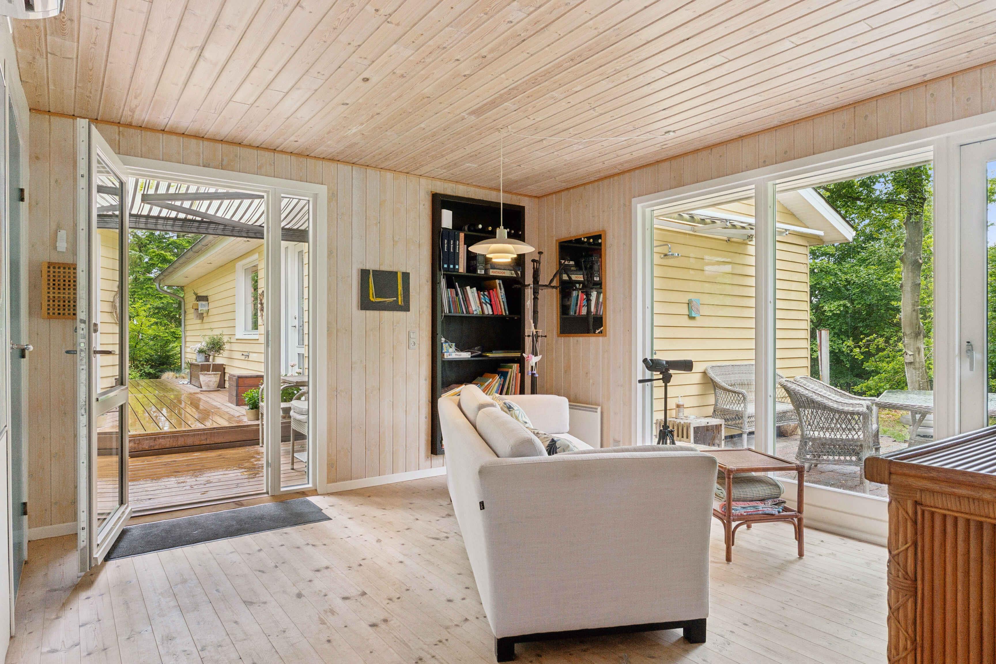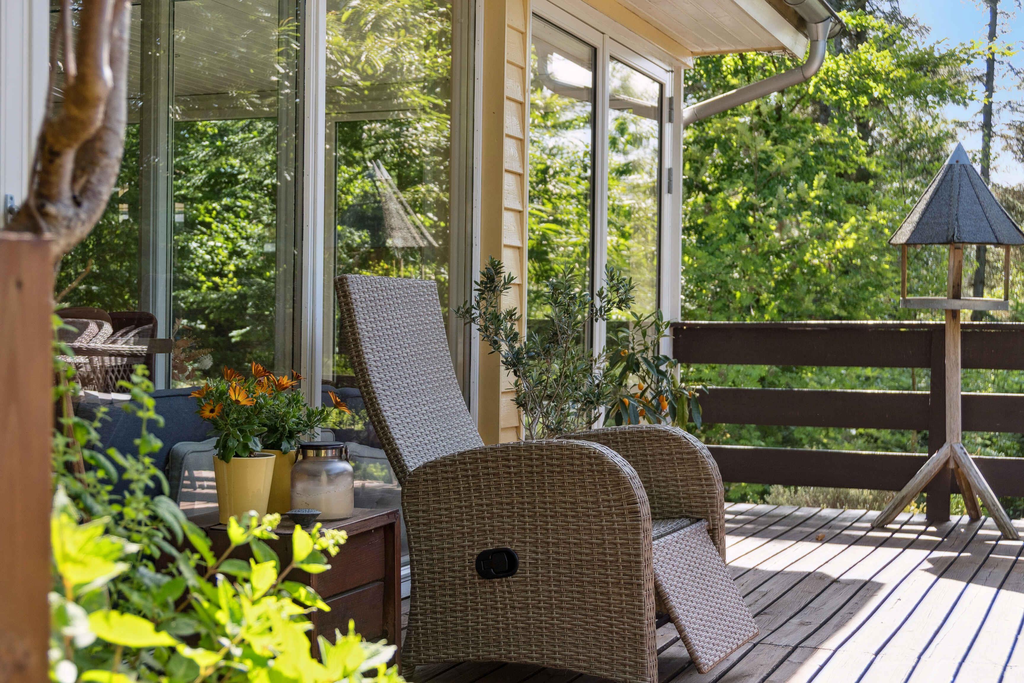 Hyggeligt og gennemrenoveret feriehus med solrige terrasser, udestue og smuk naturudsigt nær strand og skov.