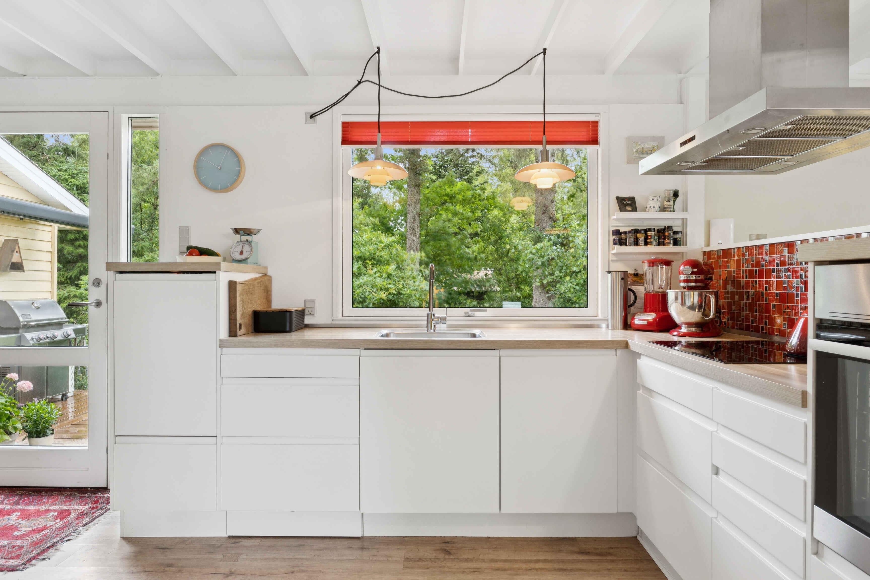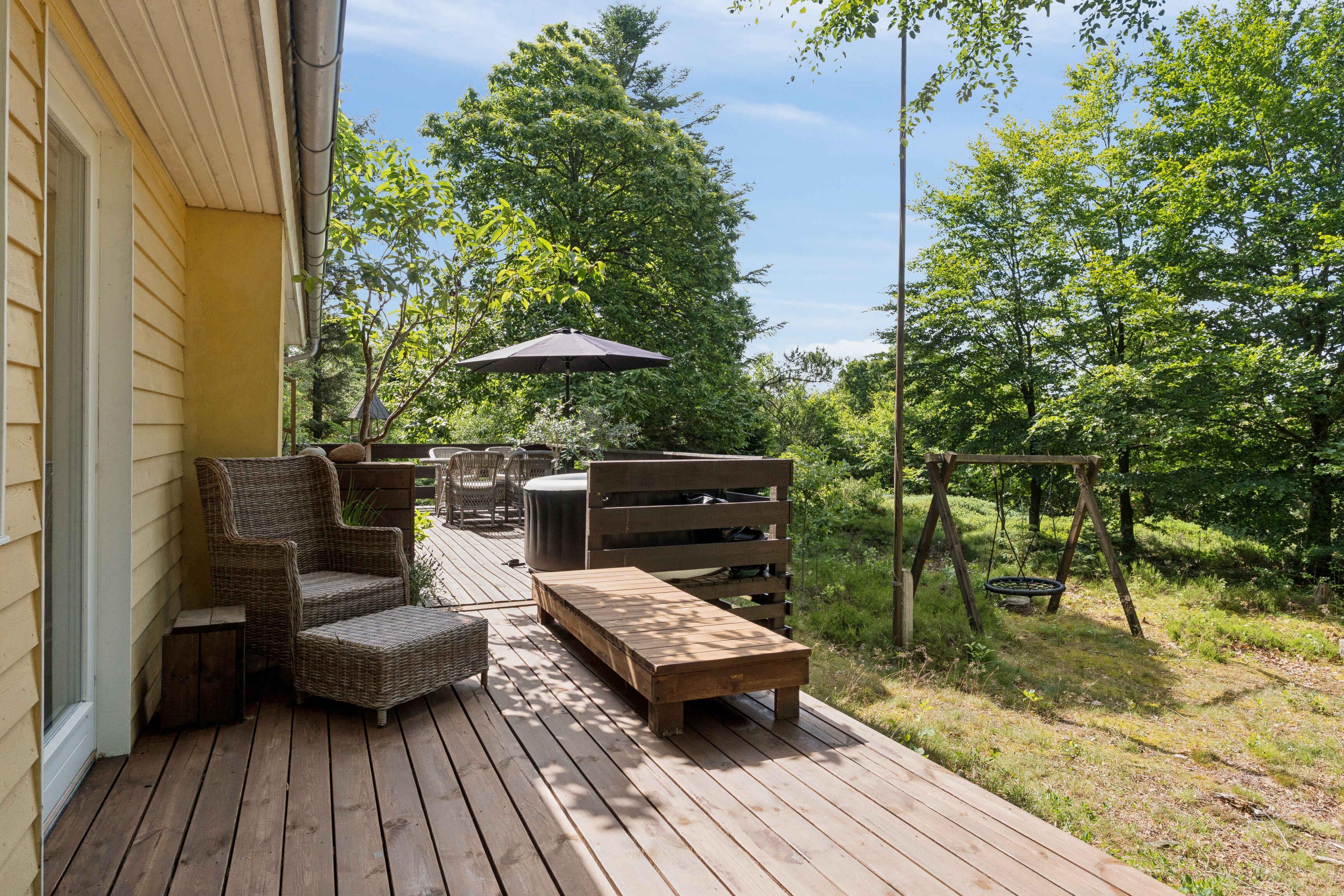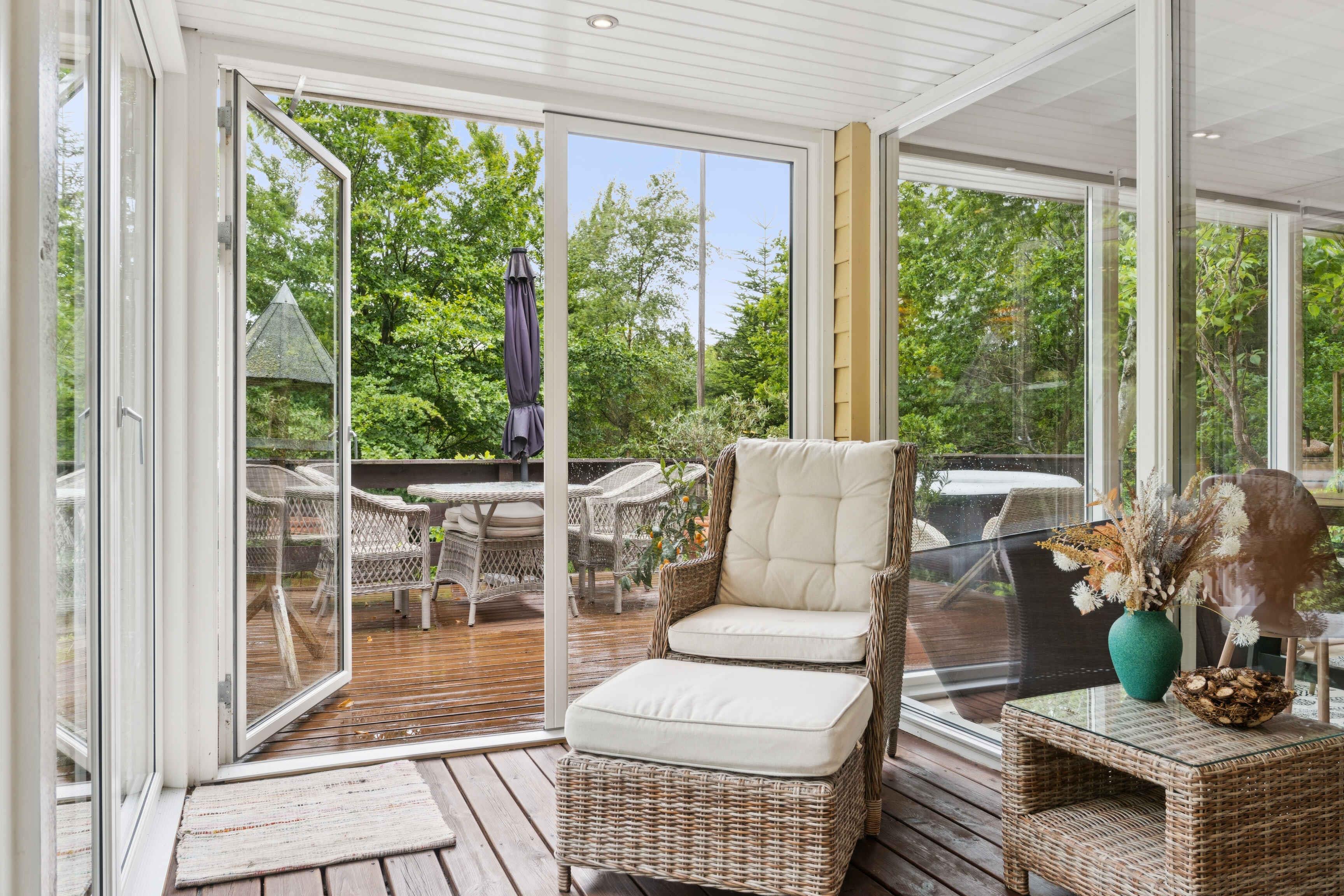 Hyggeligt og gennemrenoveret feriehus med solrige terrasser, udestue og smuk naturudsigt nær strand og skov.