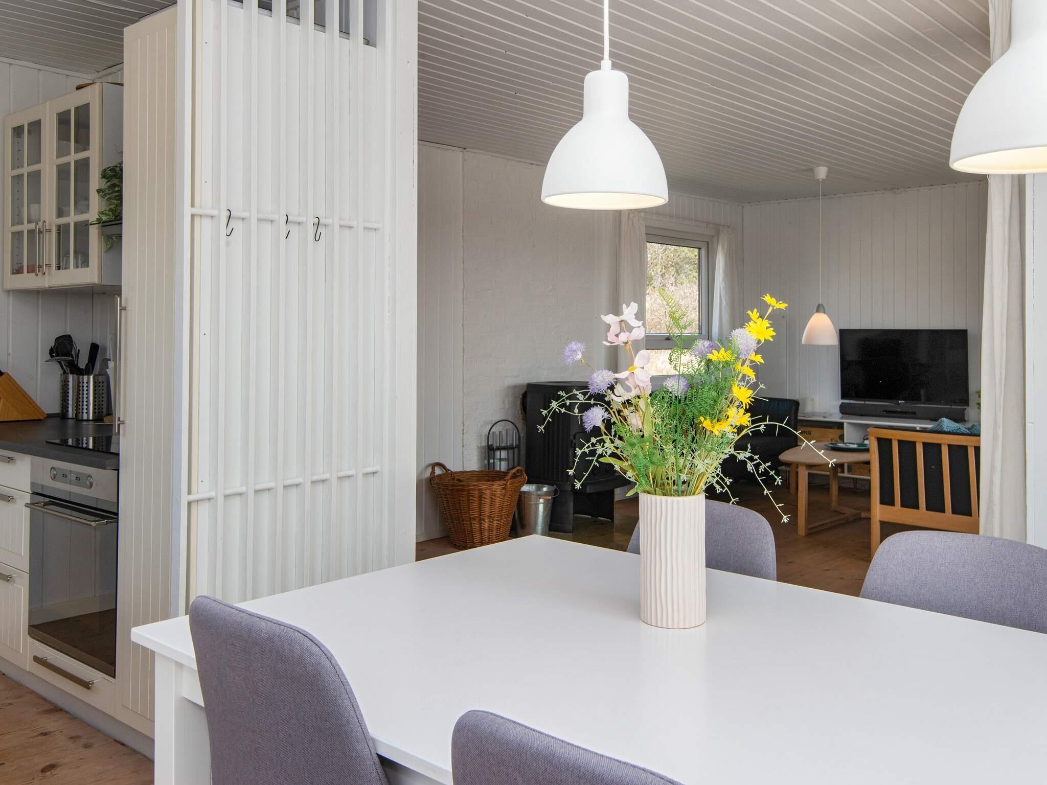 Sommerhus beliggende tæt på Vesterhavet ved Henne Strand omgivet af lyngklædte sandklitter og langstrakte hedearealer. Sommerhuset er opført i træ og besidder den helt rigtige, sommerlige stemning, der hører sig til. Kvalitet og rummelighed kendetegner huset, der er indrettet med soveværelser, badeværelse med bruseniche samt køkken, der er placeret i åben forbindelse med den charmerende opholdsstue. Der er stor terrasse, så det altid er muligt at finde en plads med sol, læ eller skygge. Der er sandkasse. Dette sommerhus er en sand perle for dem, der sætte pris på den rå, vestjyske natur, når den er allerbedst. Her er der hverken græsplæner eller blomsterbede, til gengæld er der lyngklædte klitter og kridhvid sandstrand, så lang øjet rækker. Vesterhavet ligger kun få minutters gang fra huset, og det er svært ikke at lade sig imponere af det brusende hav, der ofte er den eneste lyd, der bryder roen. Udlejes ikke til ungdomsgrupper.
