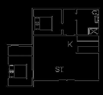 1 Opholdsstue: Brændeovn, radio, cd-afspiller, parabol, barneseng og høj stol