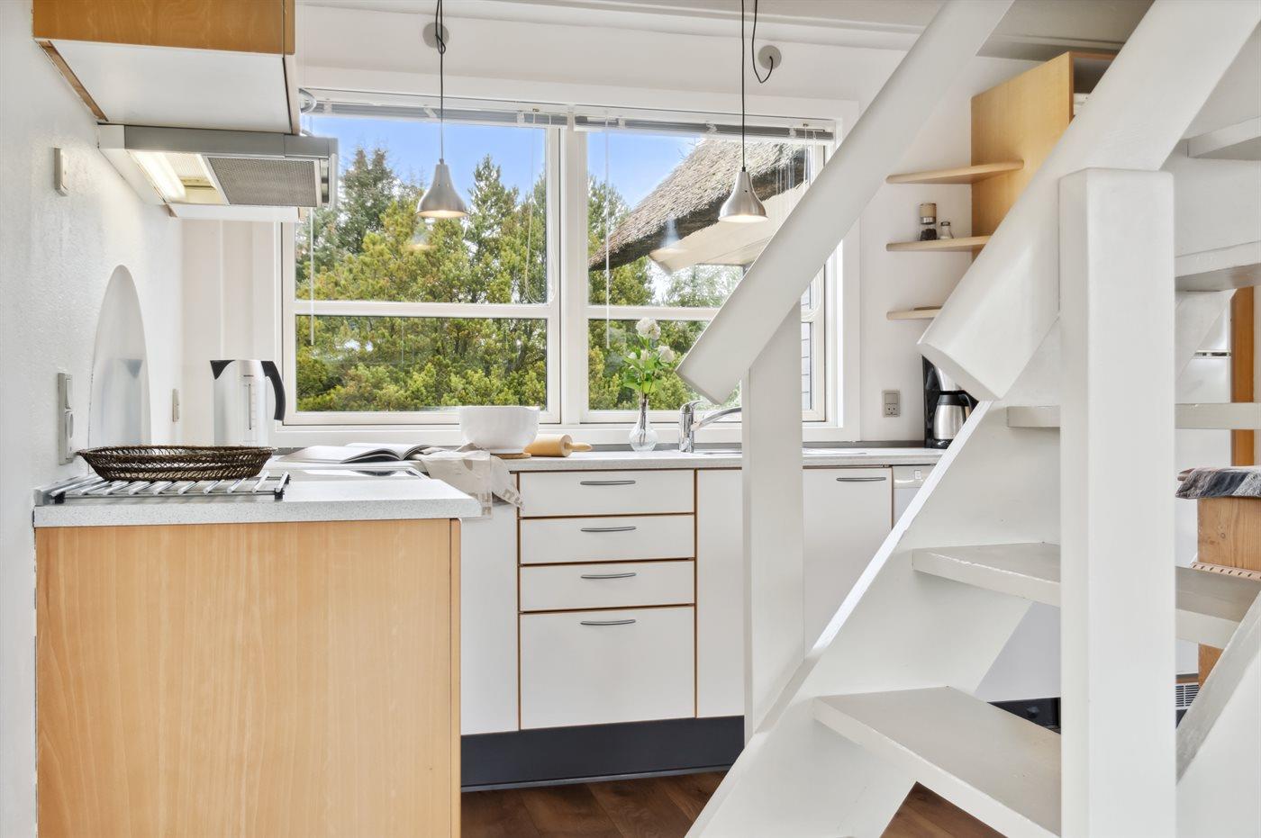 Køkkenet er udstyret med 1 køleskab. Der er 4 elkogeplader, varmluftovn, mikrobølgeovn samt opvaskemaskine.