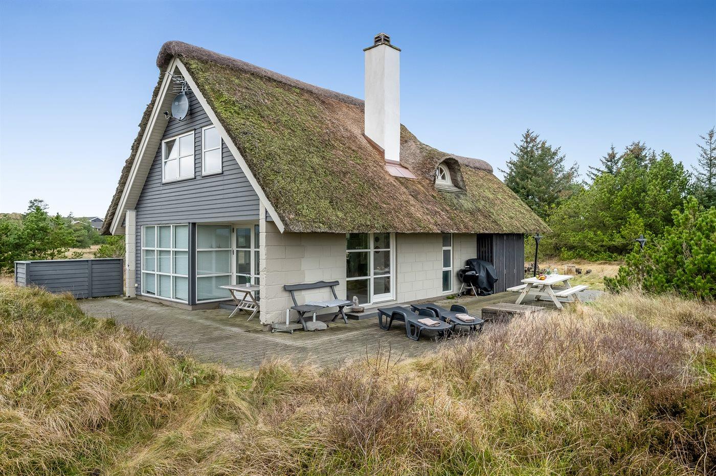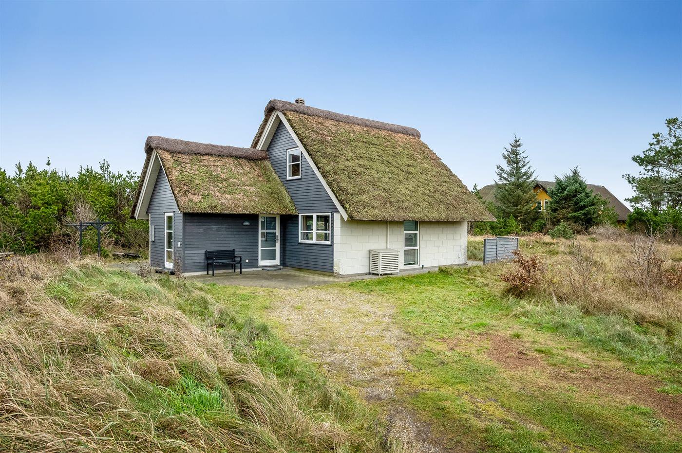 Charmerende og lyst sommerhus med stråtag nær Henne Strand omgivet af natur.