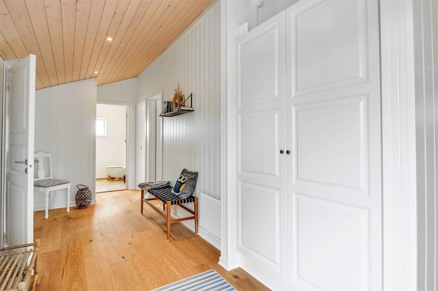 Sommerhuset fra 1962 er på 160 m² og egner sig til 8 personer. Huset gennemgik i 2022 en gennemgribende renovering og tilbygning. Husets soveafdeling indeholder et stort praktisk fordelingscenter med masser af plads til opbevaring, 4 rummelige soveværelser med dobbeltsenge og masser af lysindfald samt to store badeværelser med brus og gulvvarme. I det ene badeværelse findes vaskemaskine og tørretumbler. Den store stue, som er i forbindelse med åbent køkken, er opdelt i flere afdelinger med både spiseplads, smart-TV med Chromecast og hyggeafdeling med ekstra køjeseng samt brændeovn. I det tilhørende anneks er der opstillet TV og PlayStation.
