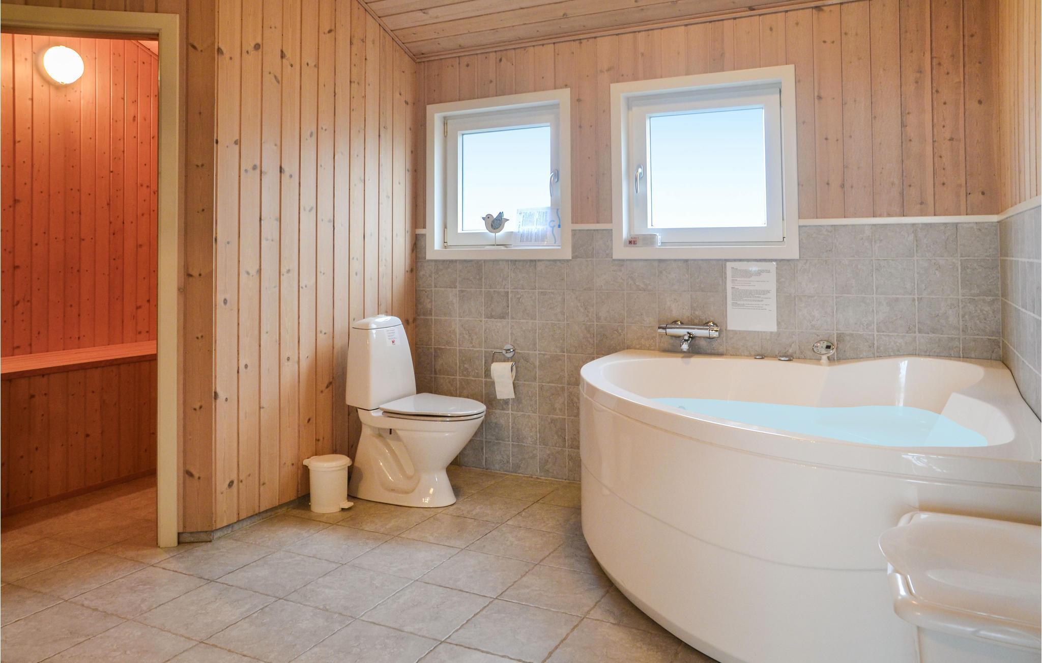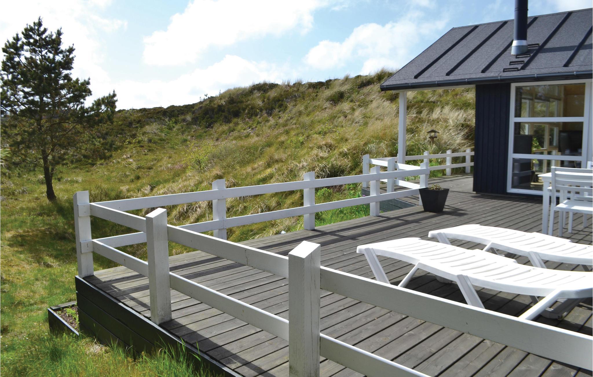 Et skønt feriehus beliggende yderst centralt i Henne Strand. Der er gåafstand til den meget hyggelige ferieby og mindre end 50 m til et indendørs badeland (mod betaling). Huset er beliggende på en ugenert klitgrund med en meget stor syd-/vestvendt terrasse. På husets nord-/østside er der en lukket morgenterrasse, hvor I kan sidde uforstyrret og nyde morgenmaden og følge livet i den livlige handelsby. Der er rigtig gode indkøbsmuligheder, flere restauranter m.m. og der er kun 500 m til vestkystens hvide badestrande. Her er der virkelig tale om et unikt feriehus. Det er tilladt at have en lille hund med under opholdet.