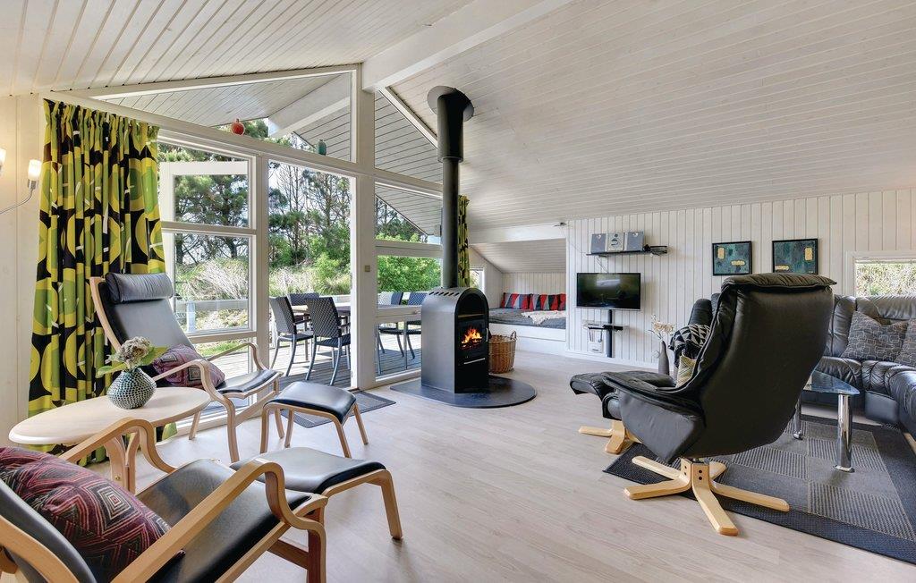 Dette yderst velholdte feriehus ligger på en let kuperet klitgrund. Det er lyst og spændende indrettet og udstyret med alle former for luksusfaciliteter. Fra det store badeværelse med spabad, er der adgang til husets sauna. Der er flere gode åbne samt delvis overdækkede terrasser omkring huset, og som ligger lidt inde i klitterne. Derfor kan I altid finde et læhjørne. Der er gåafstand til strand, indkøb og et stort åbent klitområde med gode vandremuligheder. Henne strand byder også på en af vestkystens bedste badestrande samt handelsliv med flere gode restauranter og caféer. Et helt igennem meget dejligt feriehus til en perfekt og afslappende ferie. Ønsker I en gastronomisk madoplevelse ligger Kro og Gourmetrestauranten Henne Kirkeby Kro i cykelafstand fra feriehuset.