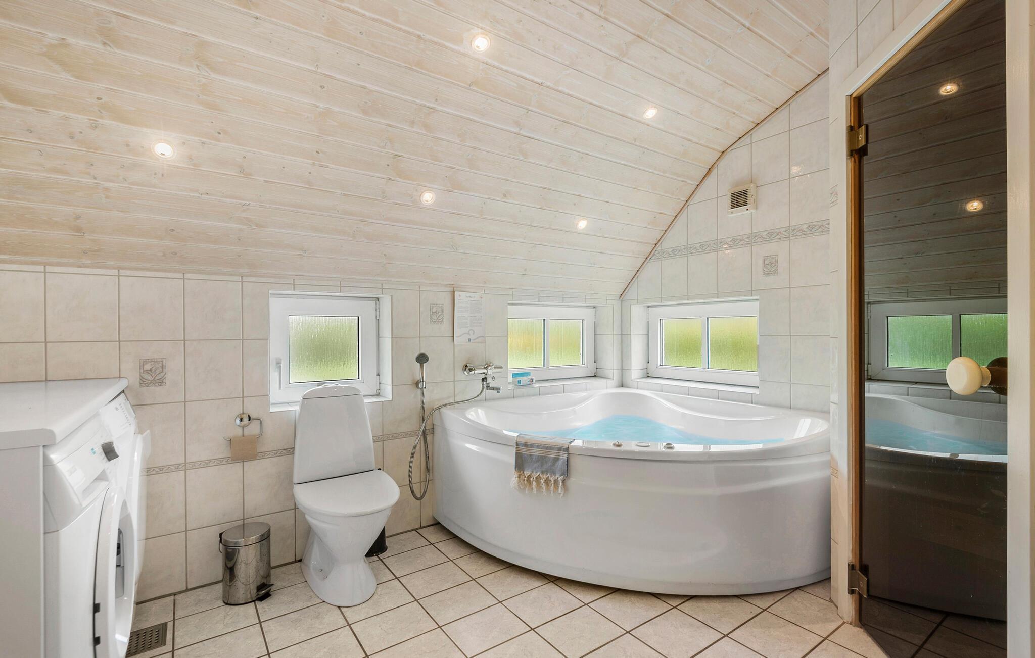 Tag familien under armen og rejs til Vestjylland, hvor I tæt på Vesterhavet og Filsø finder dette flotte stråtagshus i skønne, grønne omgivelser. Huset er flot indrettet med åbent boligkoncept, velholdte trælofter og klinkegulve, der giver det indre et rart og hjemligt udtryk, som det er nemt at slappe af i. Stuen får dejlige lysindfald og udsigt til haven gennem de store vinduespartier, og skulle vejret vise lidt tænder, er det bare at tænde op i brændeovnen og nyde dens knitrende varme til aftensmaden og sofahyggen efter en aktiv feriedag. Og måske I skal forkæle jer selv med lidt lækker aften-wellness i spabadet eller saunaen?
