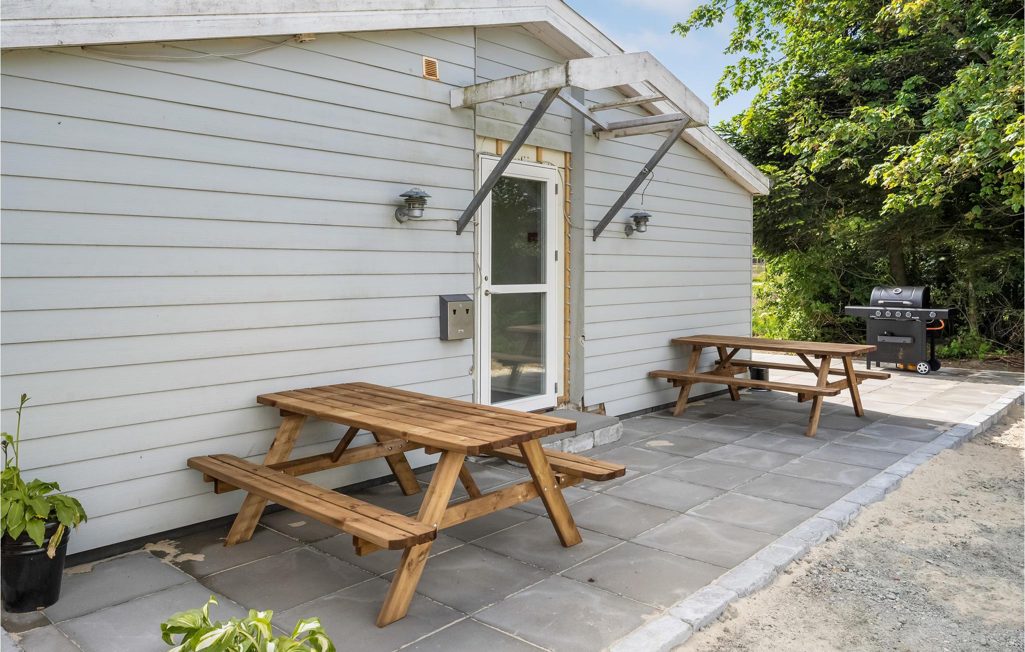 Fra terrassen kan I fuldt ud nyde solen og udsigten til den store grund. De lune sommerdage rundes af med en dejlig grillmiddag under åben himmel. Når mørket falder på, kan I bløde de ømme muskler op i vildmarksbadet og mærke den kølige natteluft fra en behagelig position i det varme vand.